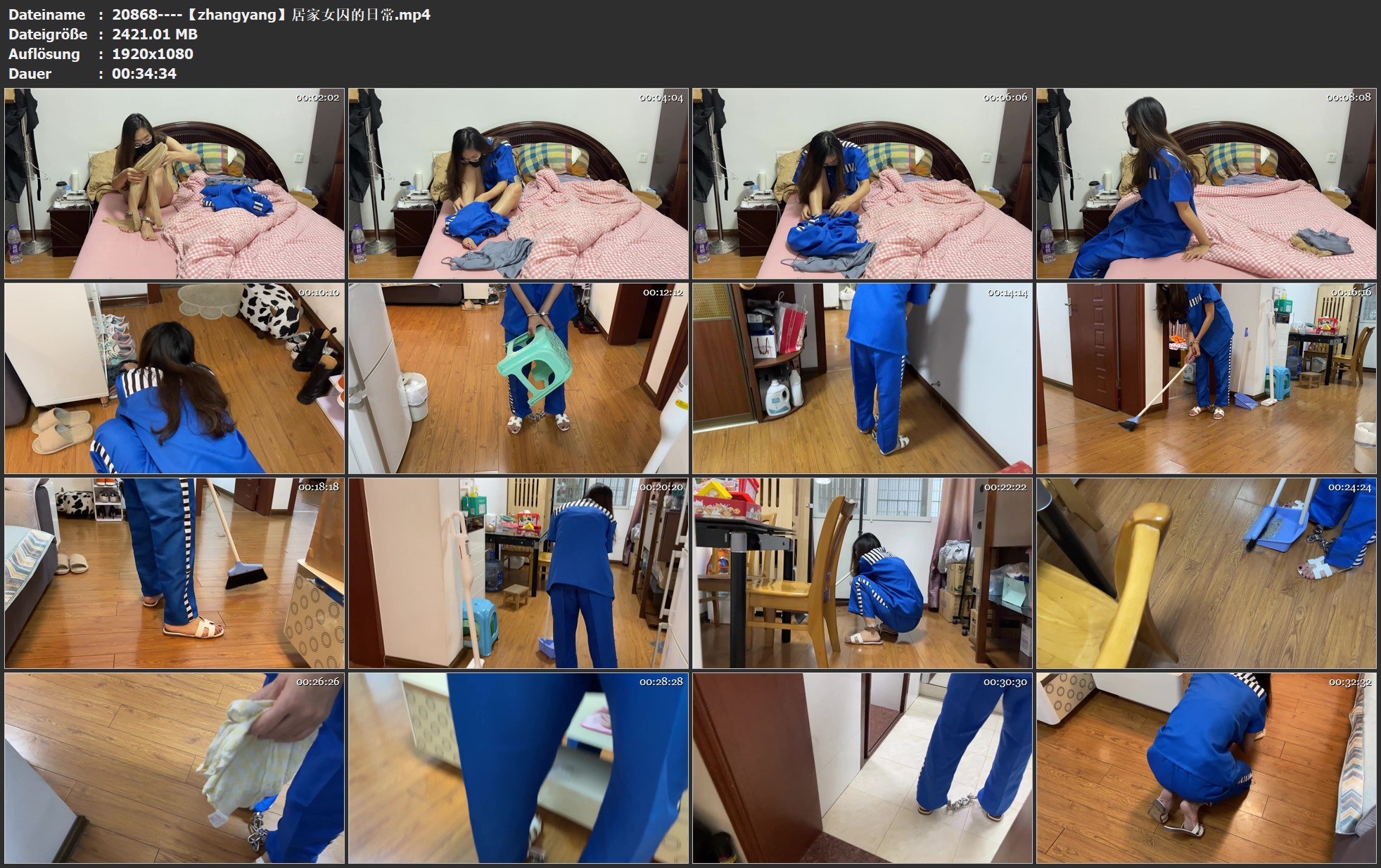 居家女囚洋洋的日常,全程脚镣加身,穿脱丝袜囚服,手戴死铐、裸足戴镣做家务,体验感自定义,沉浸式女囚生活