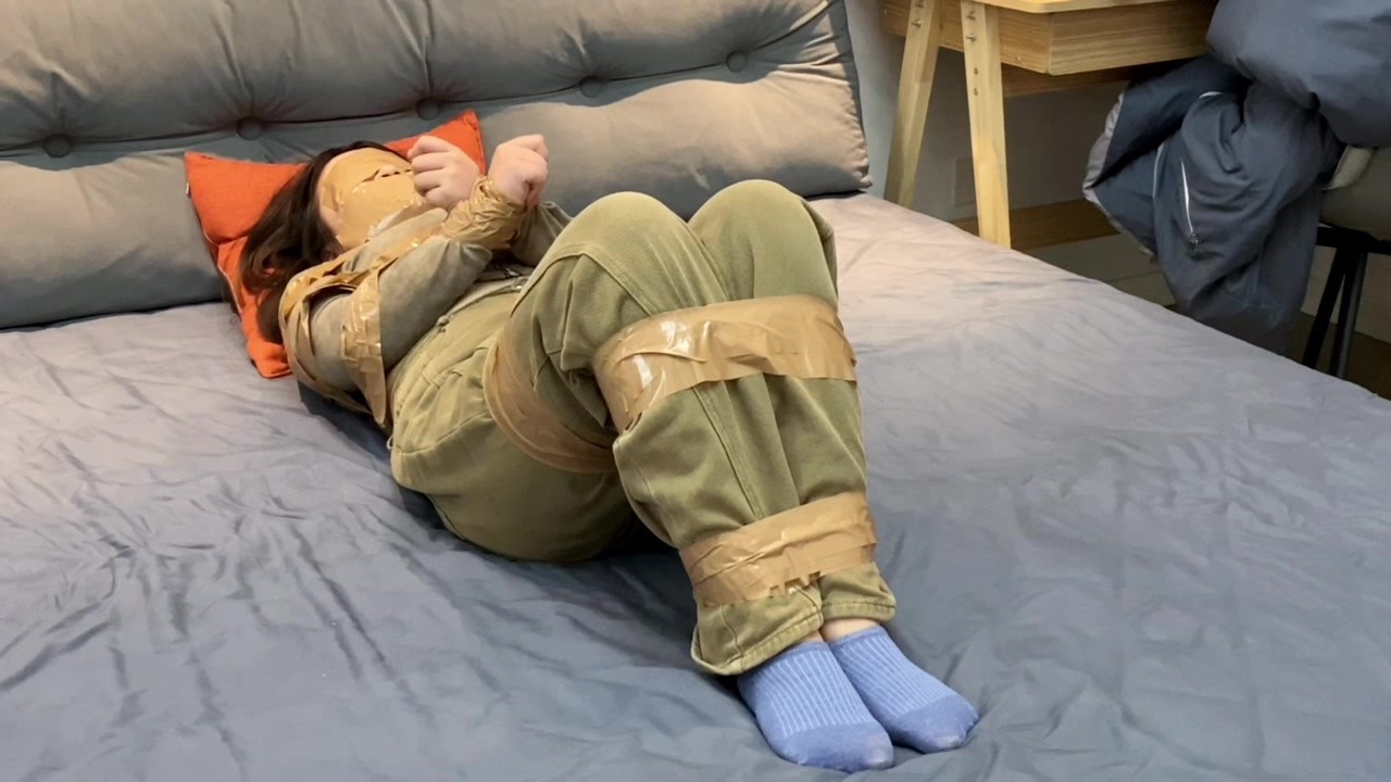 【默示录】【小沐】美国灰色胶带的捆绑与丝袜套头~