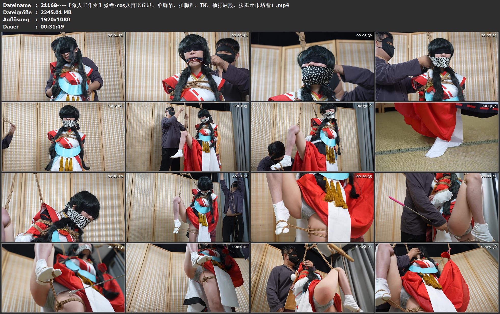 【象人工作室】嗷嗷-cos八百比丘尼,单脚吊,扯脚趾,TK,抽打屁股,多重丝巾堵嘴!