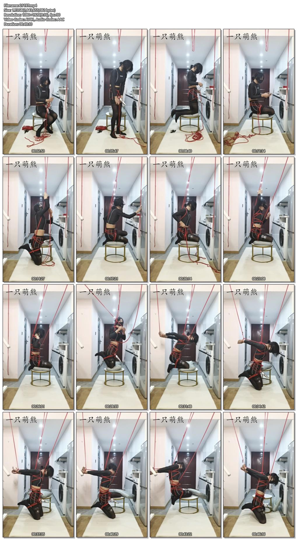 【一只萌熊】自缚16cm高跟电击肛钩头套口球绑腿脚铐拿钥匙