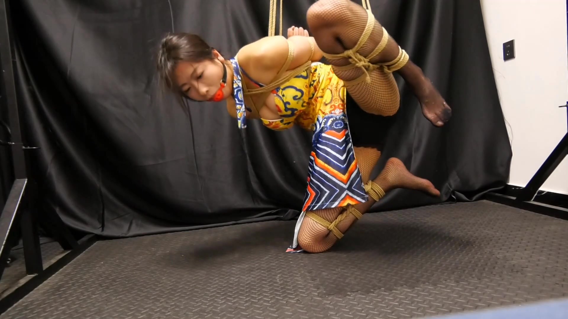 女绳师将黑丝渔网女M捆绑训练,缚腿、吊缚、口球堵嘴