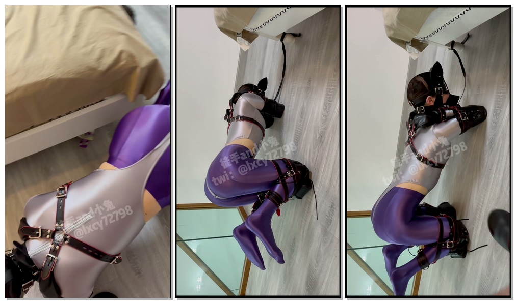 这次小兔穿上了银色死库水竞技泳衣+紫色竞技泳裤袜,颜色的碰撞简直是太好看了!应她自己的要求这次选择了她心心念念的K9捆绑变狗狗,我还给她加上了乳胶手套+微孔头套,变完狗狗后她的四肢被固定躺在床上,我开始对她进行TK挠脚心和第一次震动强高,随后不给她喘息的机会强行将她拉起来!利用项圈和牵引绳让她强制爬行。在不知道爬了多少圈后她又疼又麻又累瘫在地上,微孔头套+狗狗面具阻碍了她的呼吸,于是我选择给她摘下头套戴上眼罩变成盲犬惩罚她,将她栓在床腿,对她进行了SP打屁屁+第二次TK挠脚心震动强高,随后我假装下楼将她自己栓在床腿,]她害怕地瞬间叫了起来,挣扎了起来,差点哭了,害怕自己要永远变成盲狗狗了,直到听见我的脚步才放下心来。接着和她开始了游戏环节,我丢出鞋子她通过听辨位找到鞋子,5局3胜制,只有赢得了游戏才能被解开,你们猜她有没有赢得游戏呢?对话部分不具观赏性做了消音处理~