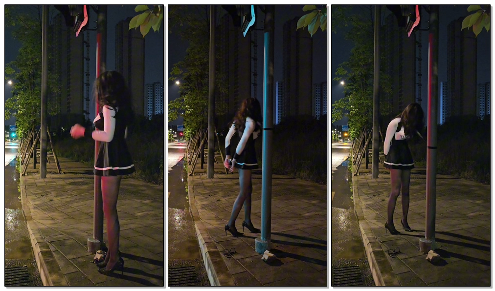 先把牵引绳拴在路口的红绿灯柱子上 然后再用定时锁连接牵引绳和项圈 最后再从背后铐上手铐 然后把手铐钥匙用力扔出去 接下来就是漫长的等待……中间因为挣扎的太用力 把眼镜甩掉了 如果来人我可能真的只有到我面前才能发现