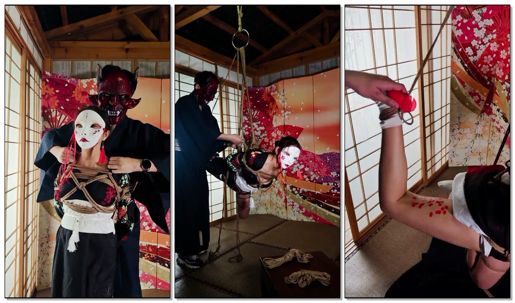 【缚心室】真空上阵,油光灰丝小美女直臂紧缚折磨,吊缚+驷马一