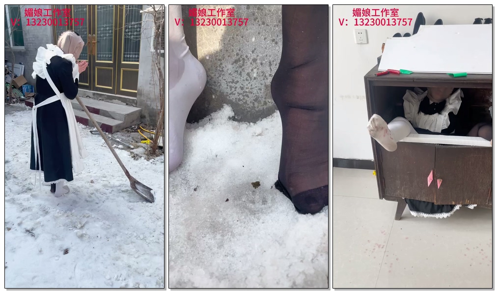 过了一会,醒过来的小女仆打开门从柜子里爬了出来,把嘴里塞的棉袜抠出来,倒在地上捂着自己的脚休息了一会。想起女主人走的时候说的话,只好拖着已经被折磨的精疲力竭的身体强撑着去扫雪。小女仆来到门口,看了看自己被扯破的黑丝,又回头去把主人塞自己嘴里的白袜捡起来穿到了那只脚上。但扫了没多久她还是被冻得站立不稳倒在了雪地里,小女仆挣扎着站起来,想去捡起扫把结果又跌倒了,再挣扎就怎么也站不起来,只好往院子的方向爬行,想用身体在雪地里压出一条道来免得晚上被惩罚,但爬了一段距离之后终于还是体力不支昏迷了过去。