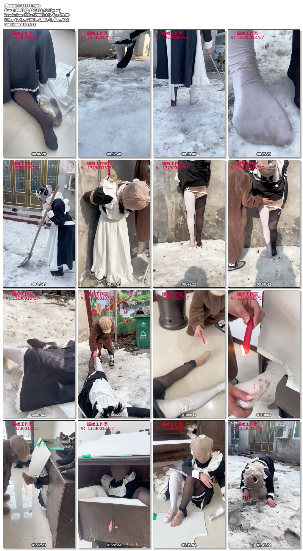 主人把小女仆拖回房间之后,看她还昏迷着就干脆的把她踢醒,踩她的脸,肚子和脚。抓着她穿着黑丝的那只脚拉起来往脚底滴蜡。小女仆一直挣扎,于是主人就又拿出了那个柜子,让小女仆自己爬进去之后关上门之后用藤条抽打露出来的脚底,又把小女仆的黑丝扯破露出下面的肉丝脚一边用藤条抽一边往她的两只脚上滴蜡,小女仆在柜子里一直呻吟和求饶的动静让主人心烦了,又拉开柜门,脱掉鞋子用穿着白棉袜的脚踩小女仆的脸不让她叫,又把棉袜脱下来塞进了小女仆的嘴里让她闭嘴。然后踢打小女仆的下身,用藤条抽打她的双腿和脚底,直到小女仆昏迷过去。