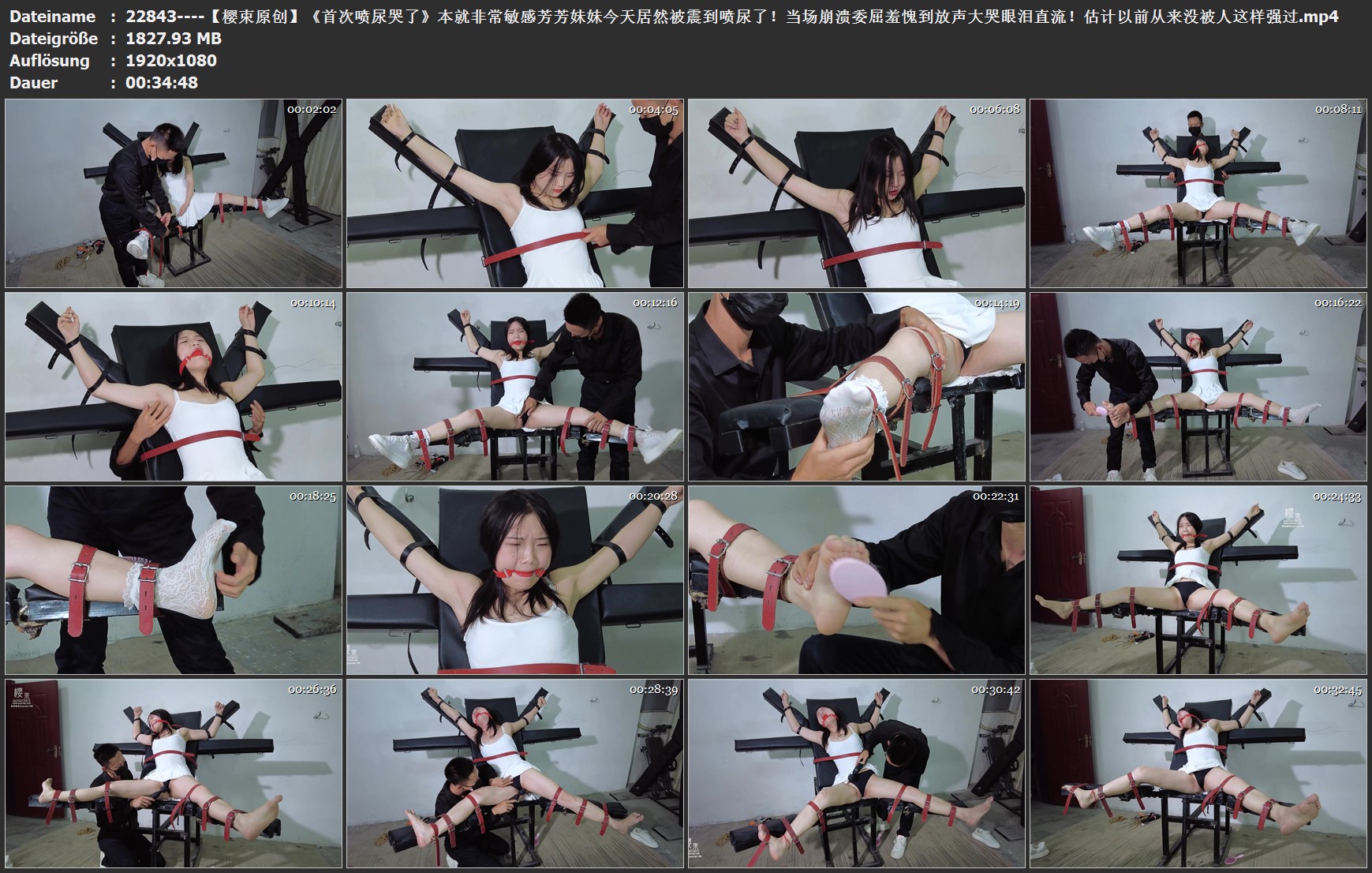可爱的芳芳妹妹被固定开腿椅子上裸露出性感下腋疯狂全身挠痒!怕痒敏感的她差点把椅子都给挣扎散架了!樱桃小嘴也被强塞了个大口球特别难受!口水都流到哥哥的手上拉丝了!本就非常敏感的她居然被震到喷尿了!当场崩溃委屈羞愧到放声大哭眼泪直流!估计以前从来没被人这样强过·····