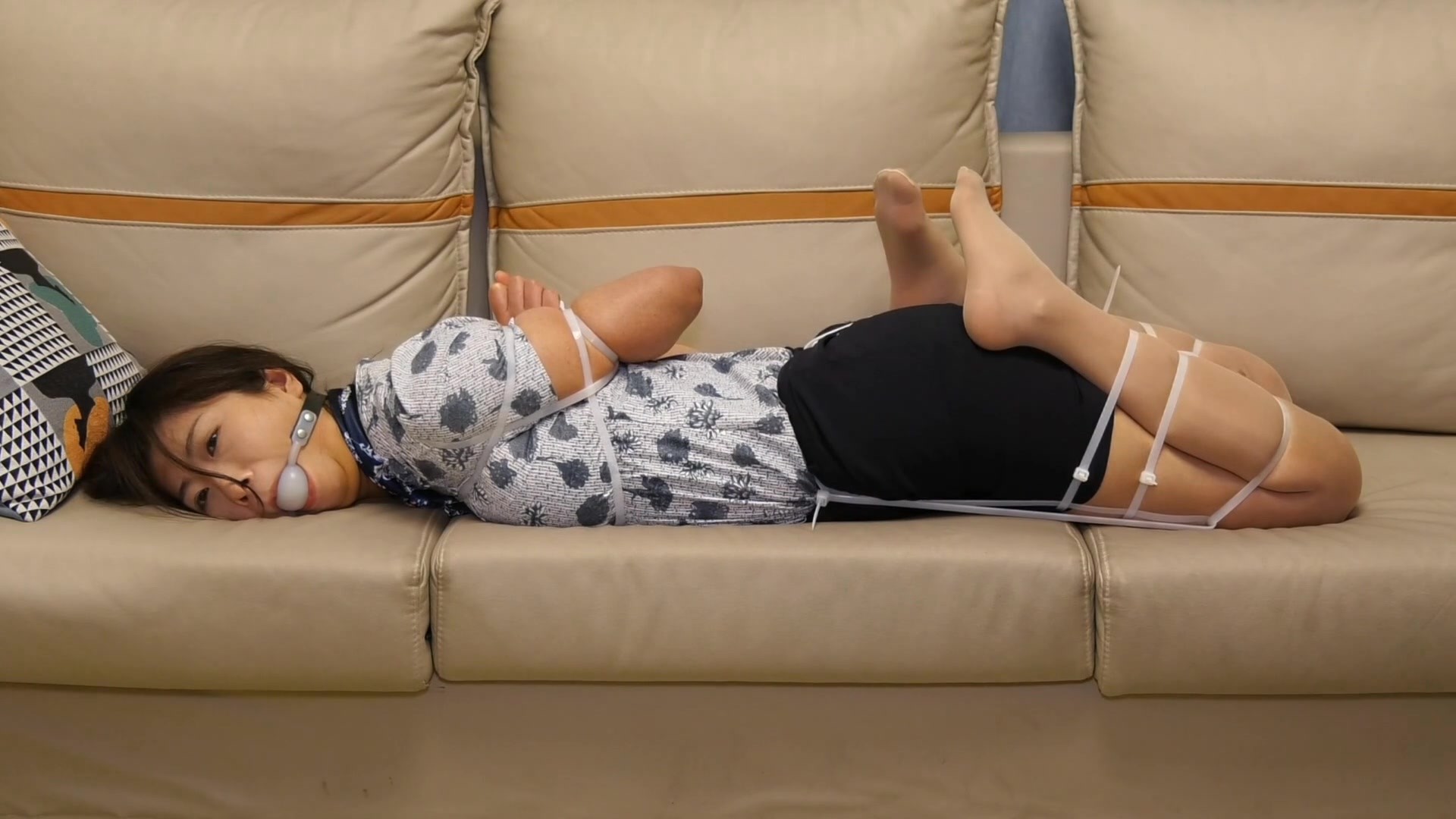 空姐全身下上被扎带捆绑着,扎带可是比绳子捆绑难受的