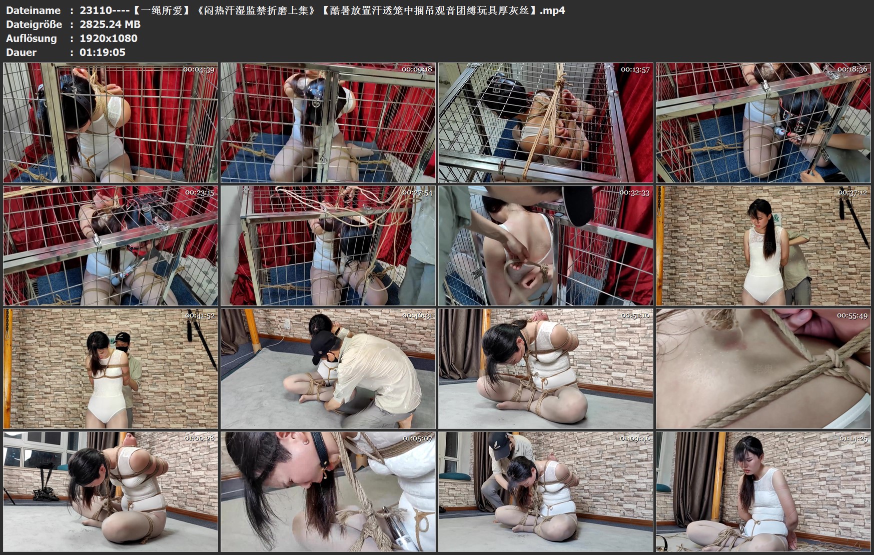 《闷热汗湿监禁折磨上集》【酷暑放置/汗透/笼中捆吊/观音团缚/玩具/厚灰丝】