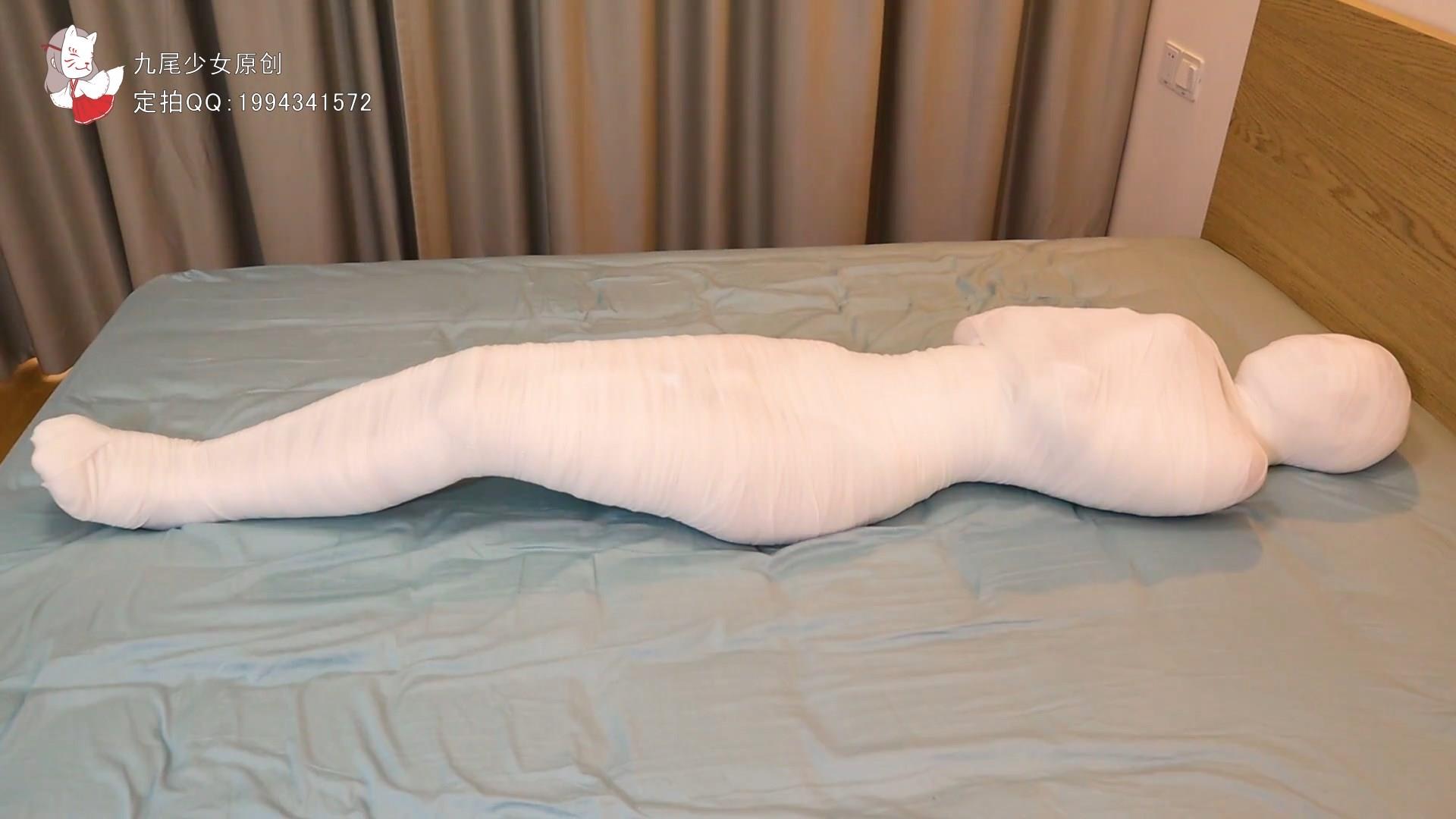 【九尾少女】小九尾绷带木乃伊多层全包初体验,白丝体操服,封闭双眼与听觉,多层绷带包头呼吸抑制,全包木乃伊封闭禁锢!