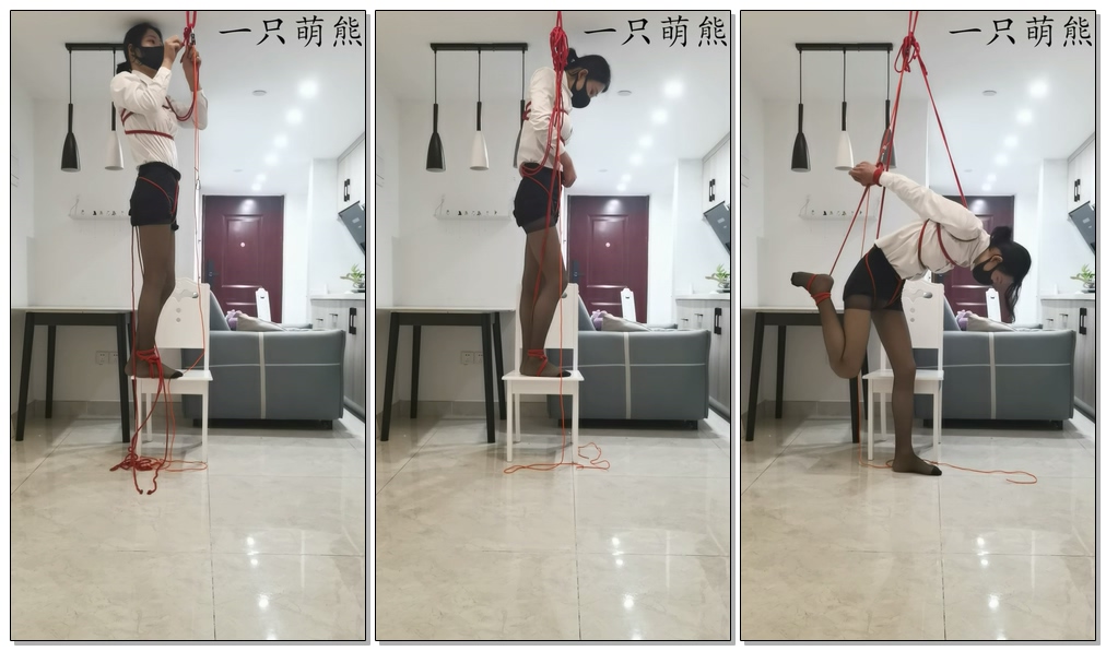 【一只萌熊】并肘直臂吊缚强制垫脚电击自缚,又差点翻车