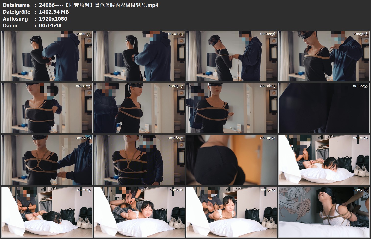 小姐姐穿着保暖内衣被绑起来,两段极限驷马挑战