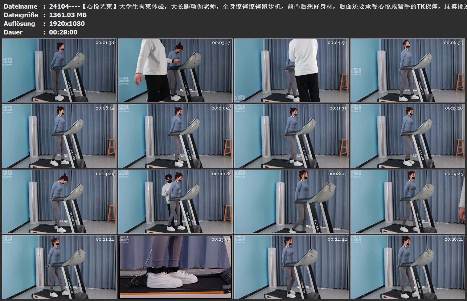 【心悦艺束】大学生拘束体验,大长腿瑜伽老师,全身镣铐镣铐跑步机,前凸后翘好身材,后面还要承受心悦咸猪手的TK挠痒,抚摸挑逗,走着走着就腿软了