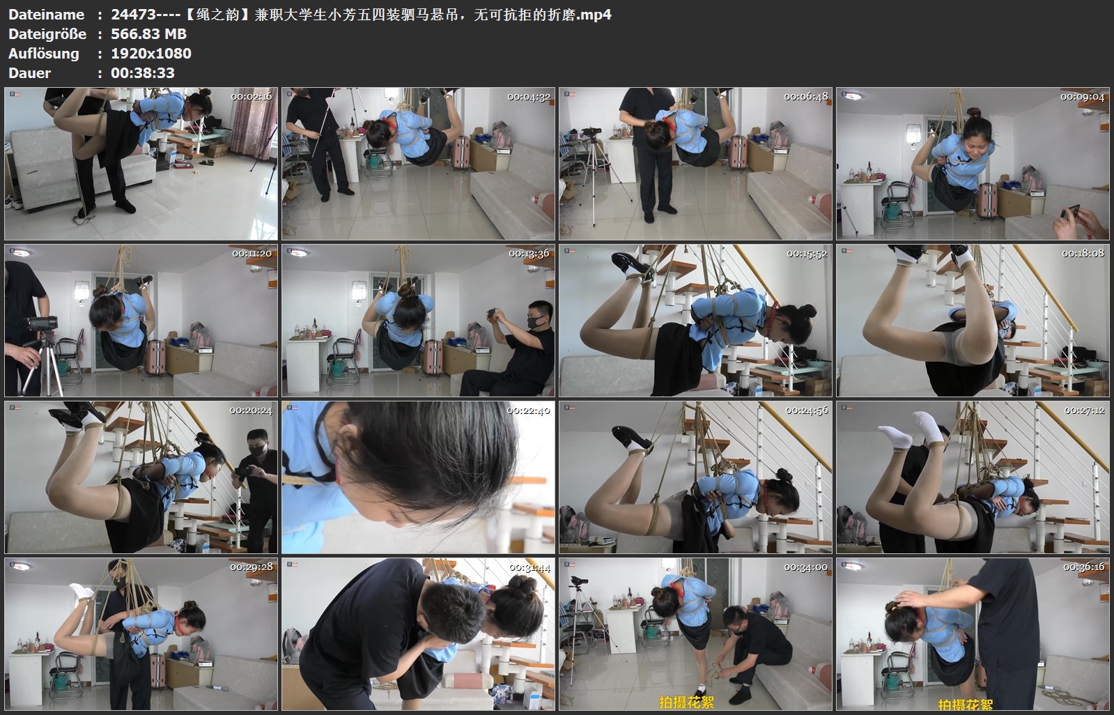 【绳之韵】兼职大学生小芳五四装驷马悬吊,无可抗拒的折磨