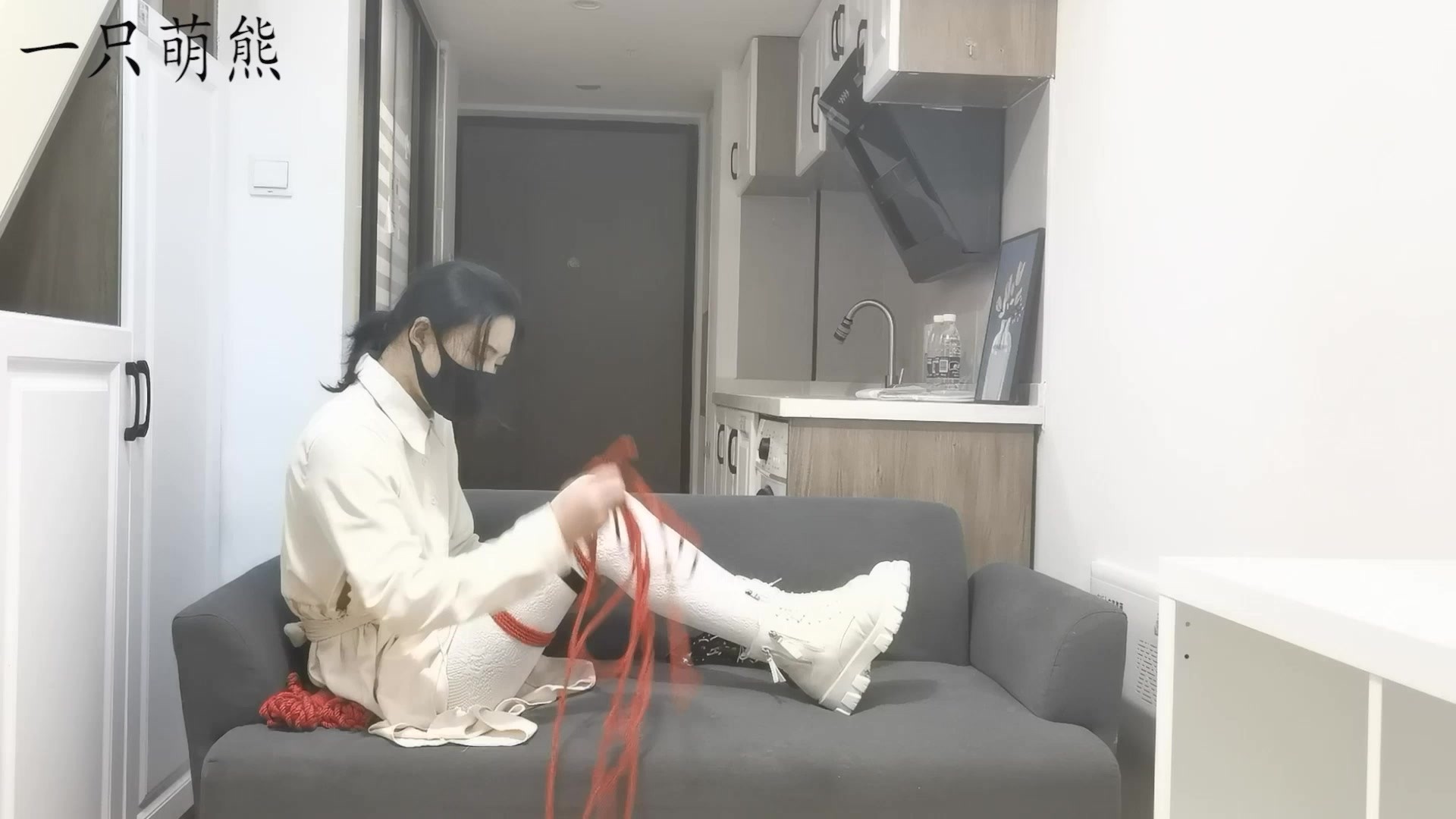 带上马具口球绑一个强制抬头的驷马自缚,绑法也简单,正常绑并腿和胸,把腿的绳子从马具口球环上穿过去在穿过吊点回到腿上打结,提前试好趴下后能把手和驷马同时收紧的绳子长度就好了,驷马绑的很紧,快给我腰累断了,还要一直抬着头,嘴里全是口水~~电击还是定时启动,正好被绑着的时候开启,自己关不掉~(不建议大家按我这个方法绑手哦,翻车解不开的概率特别特别大!!!这种解不开的玩法我都会后手的,不要跟萌熊学哦)后面想到把驷马反过来在绑一次,然后就变成了强制低头,也很累,腿不伸直腰累,伸直了腿累,有种老虎凳的感觉~~