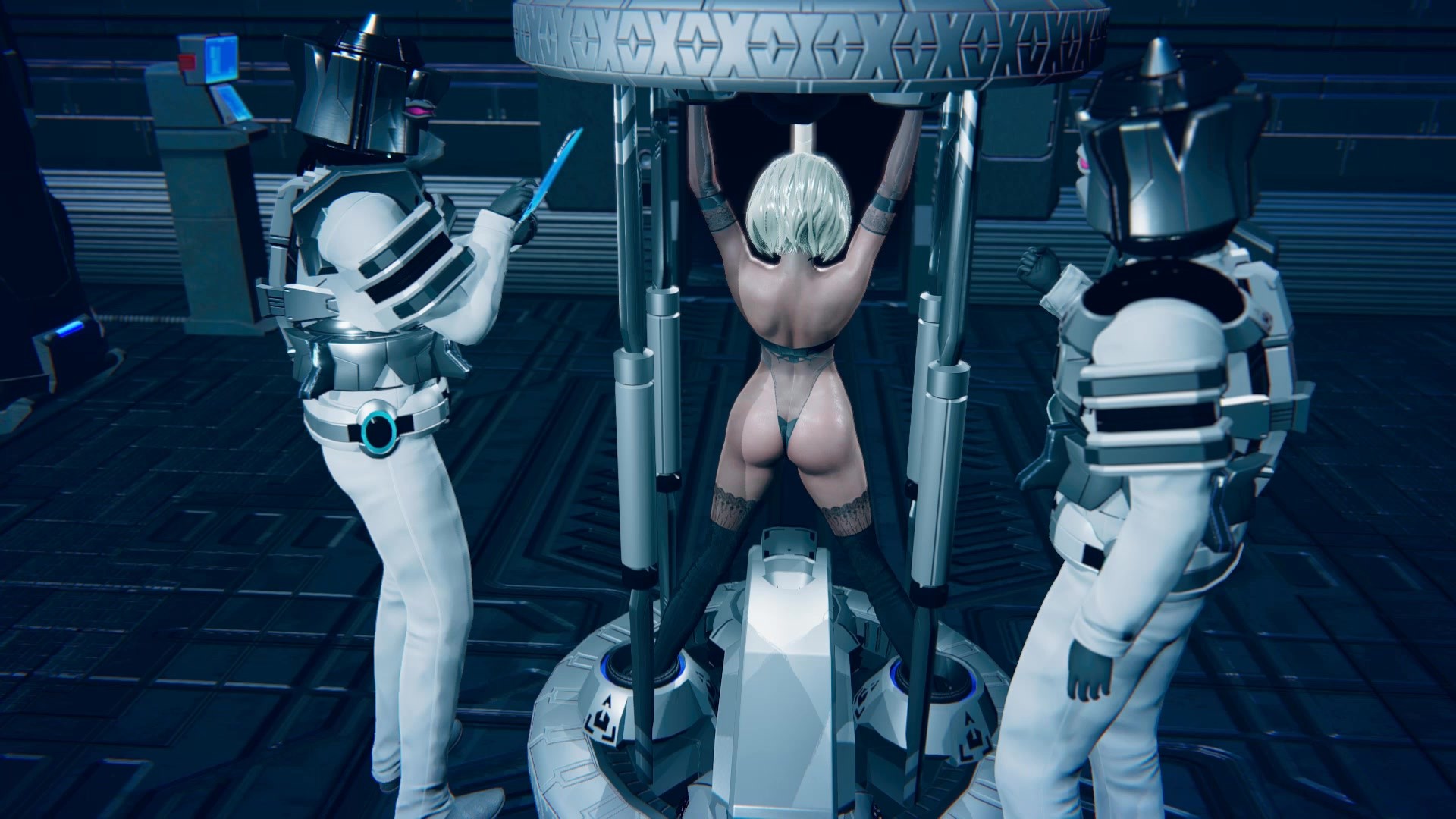 第四章:在昏暗的修复室里躺着另外两人,2B小姐姐则在修复室里面,通过下方的装置,从内部给2B小姐姐进行修复