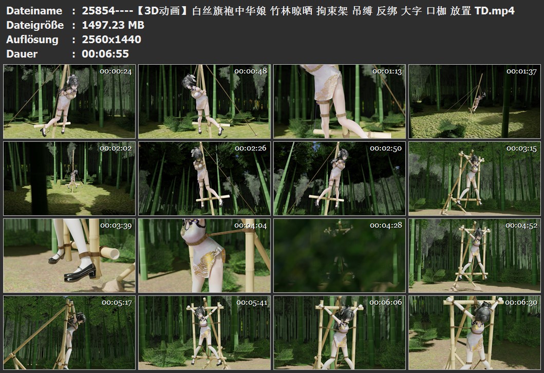 【3D动画】白丝旗袍中华娘 竹林晾晒 拘束架 吊缚 反绑 ...