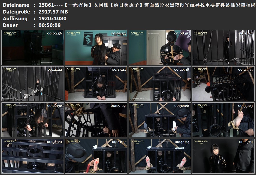【一绳有你】女间谍【妗日美惠子】蒙面黑胶衣黑夜闯军统寻找重要密件被抓紧缚捆绑押地牢牢笼打挠烧滴蜡脚心送上断头台