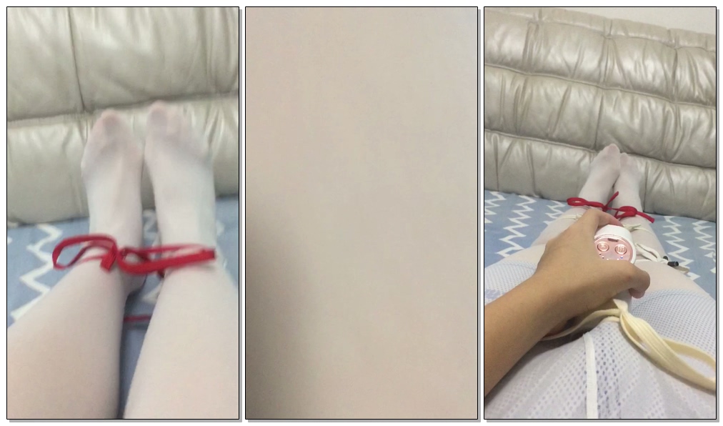 【尽缚】白裤袜 伪娘 自束缚实验,下面加上会动的小玩具