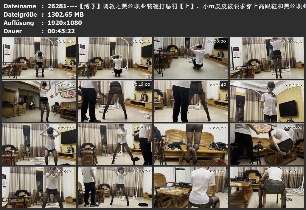 【缚予】调教之黑丝职业装鞭打惩罚【上】,小m皮皮被要求穿上高跟鞋和黑丝职业装,以各种羞耻姿势被狠狠抽打,红红的屁股清晰可见,还要做深蹲,而且要把下一个工具举过头顶罚跪增...