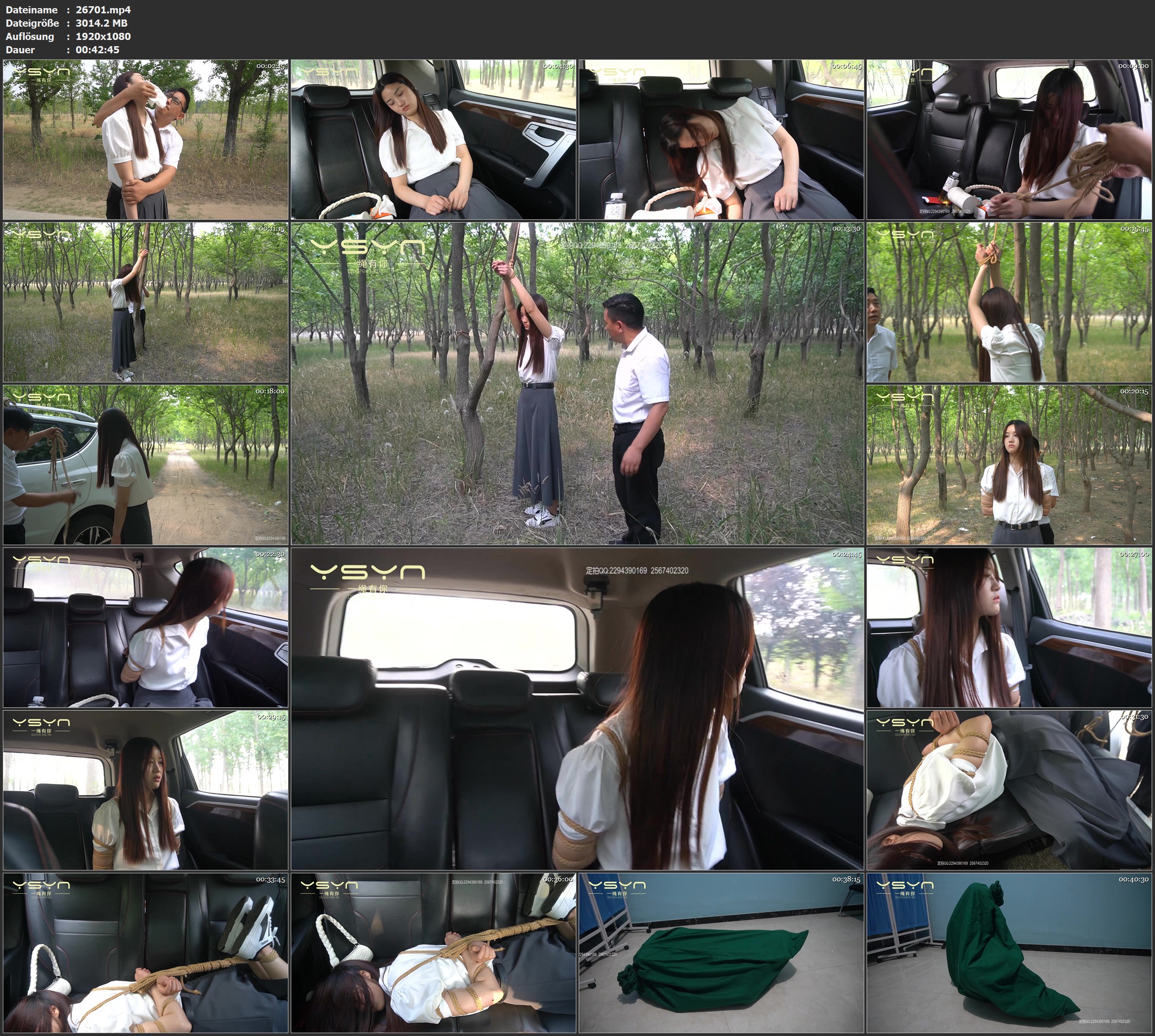 【丛林遇险】单纯漂亮女孩悠悠指路线遭劫匪绑架迷晕抗车里双手吊树五花驷马捆绑装麻袋挣扎