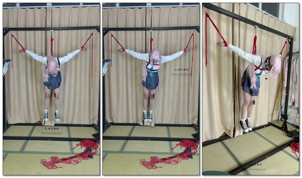 【坎喵】绝望的自缚-蔚蓝档案cos-妃咲并腿强制弯腰悬吊放置+强高
