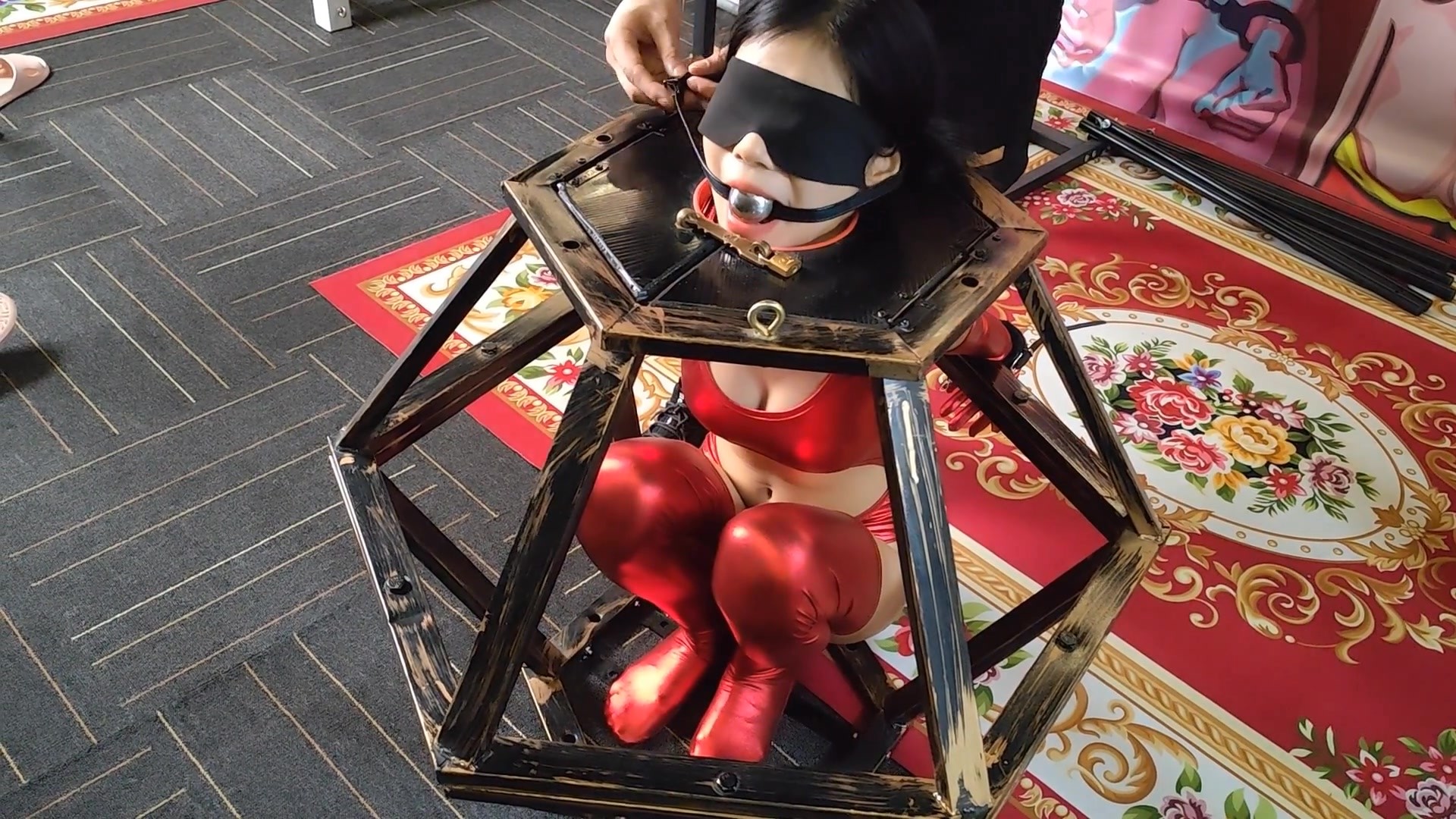 【缚心室】80多斤女学生的拘束架折磨小合集,啵啵贝VS炮机,两种