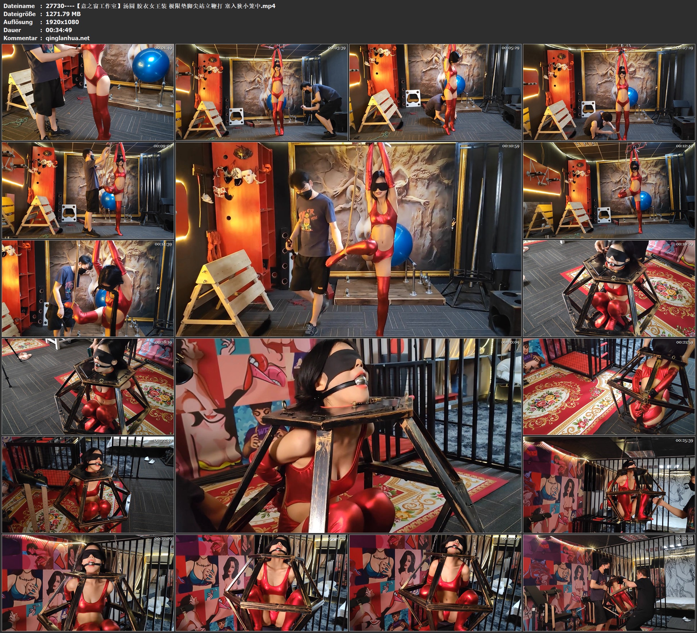 【意之窗工作室】汤圆 胶衣女王装 极限垫脚尖站立鞭打 塞入狭小笼中