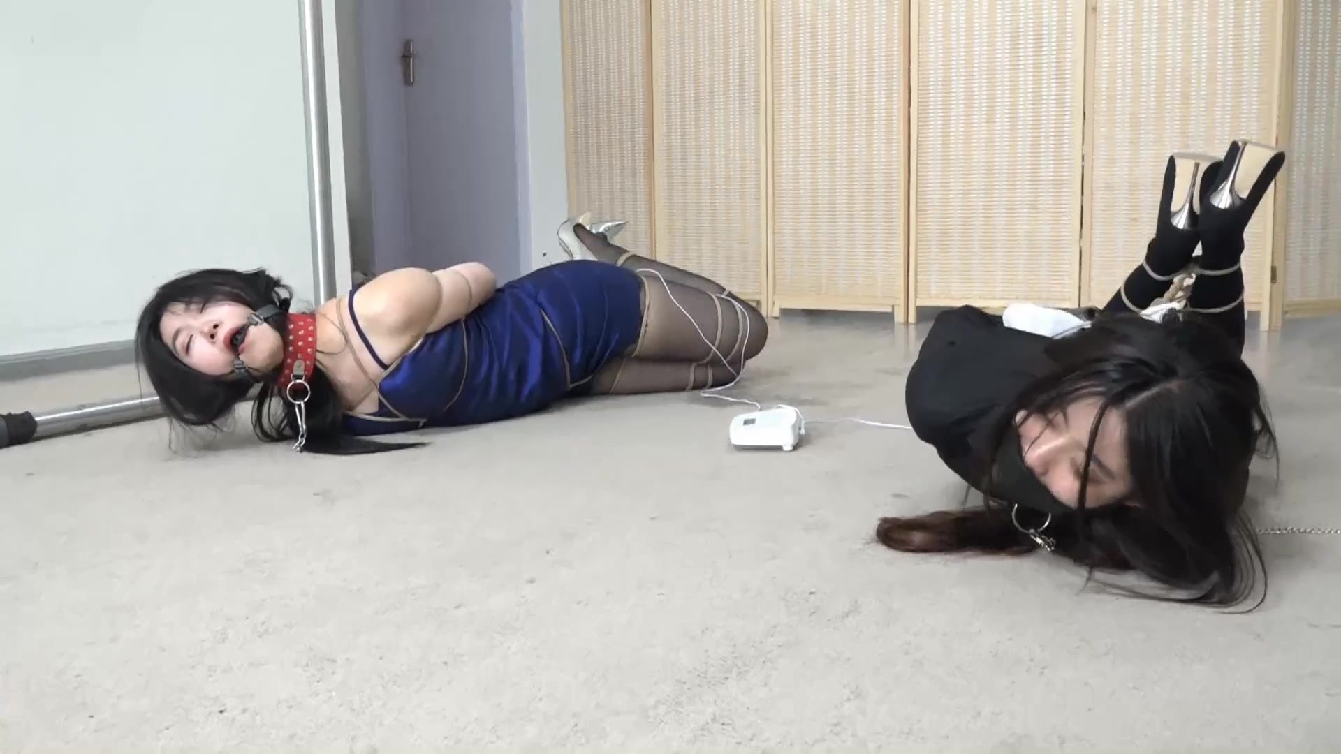 再把她和紫嫣并排绑成驷马!带上电击器和项圈!