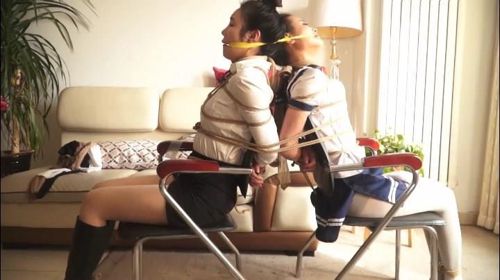 故事承接中集。女教师文慧和女学生施若被张权一起捆绑,各种堵嘴。两人想要逃离,刚刚用舌头抵住了勒嘴的丝袜,想要呼救,无奈张权立刻赶到,塞紧两人的小嘴。接着张权将二人背靠背捆绑,又用一张胶带勒住两人的嘴巴,两人非常痛苦。最后,她们被张权用耻辱的海老缚绑在床上。口球塞嘴,口水横流。张权又拿出了素描本,描绘两人被捆绑的样貌。最终,两人被蒙上双眼,丝袜套头,静静地等待张权无止境地玩弄……