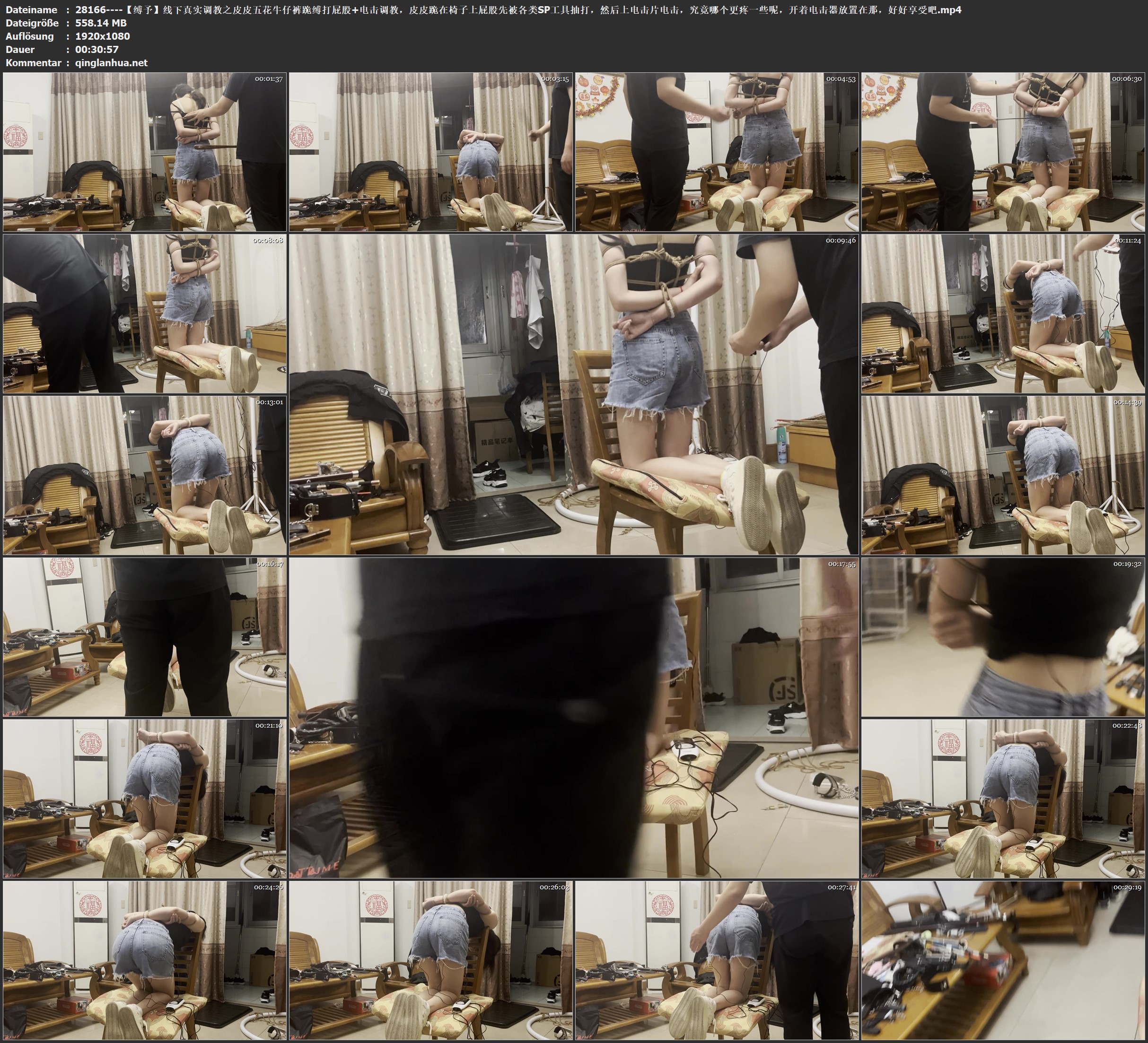 【缚予】线下真实调教之皮皮五花牛仔裤跪缚打屁股+电击 ...