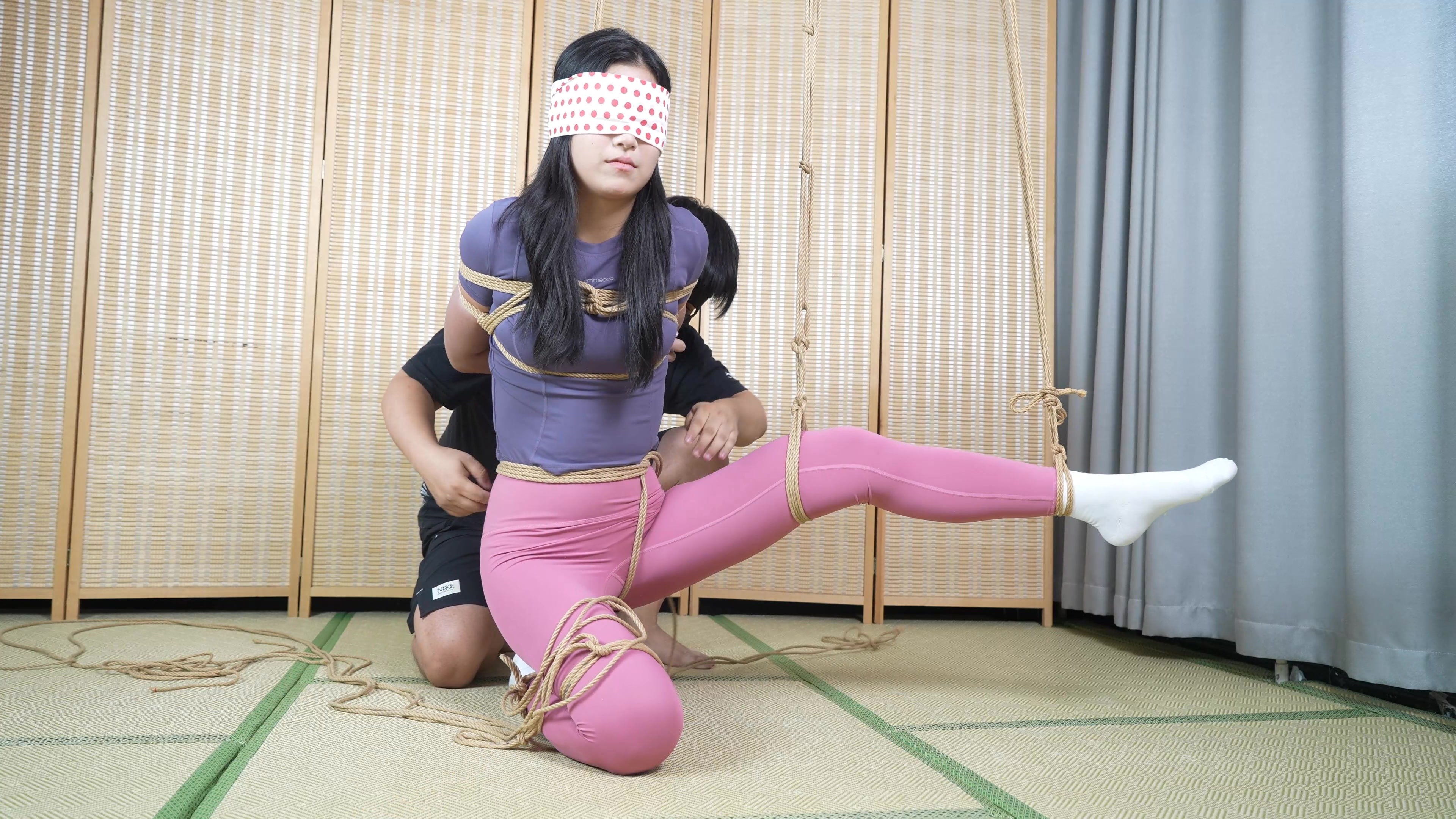 【象人工作室】新人小涵-勒嘴驷马,单脚吊缚,第一次捆绑体验!