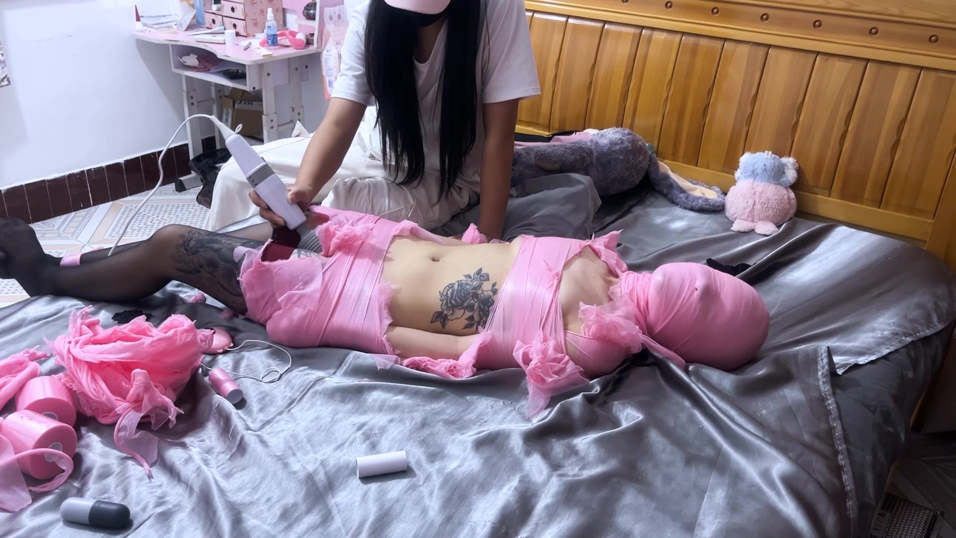 【出租屋游戏】小董被粉色木乃伊m字腿(包裹全程) - 强制炮机疯狂 - 强制gc - 连高跟鞋都包上了(挣扎无用)
