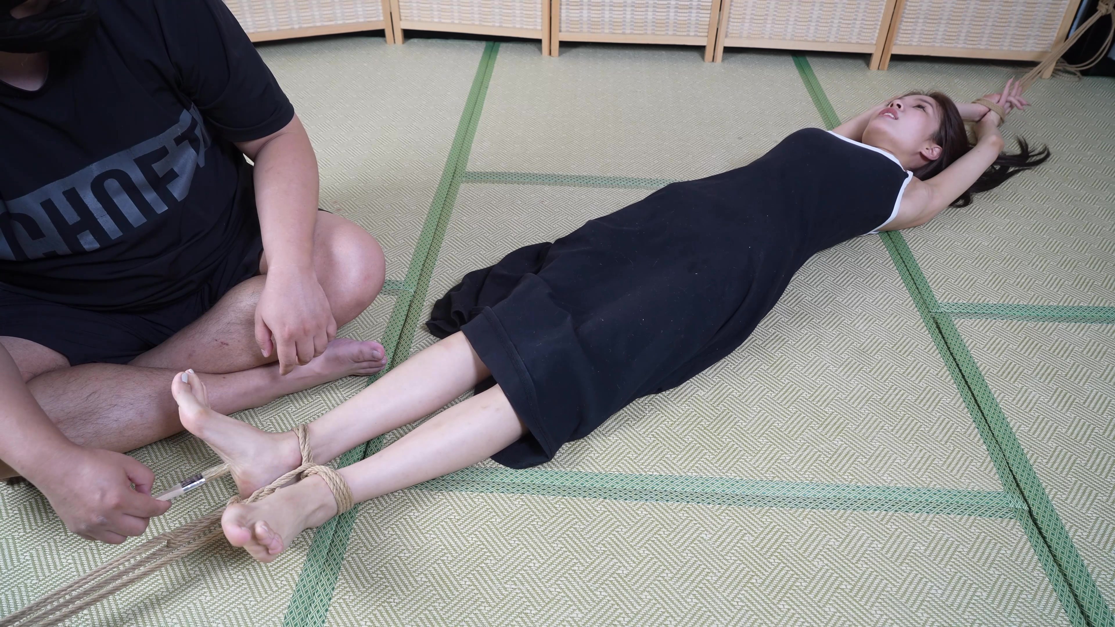 最后把她的双眼蒙上,嘴巴用胶带粘住,提升她对身体的感知能力