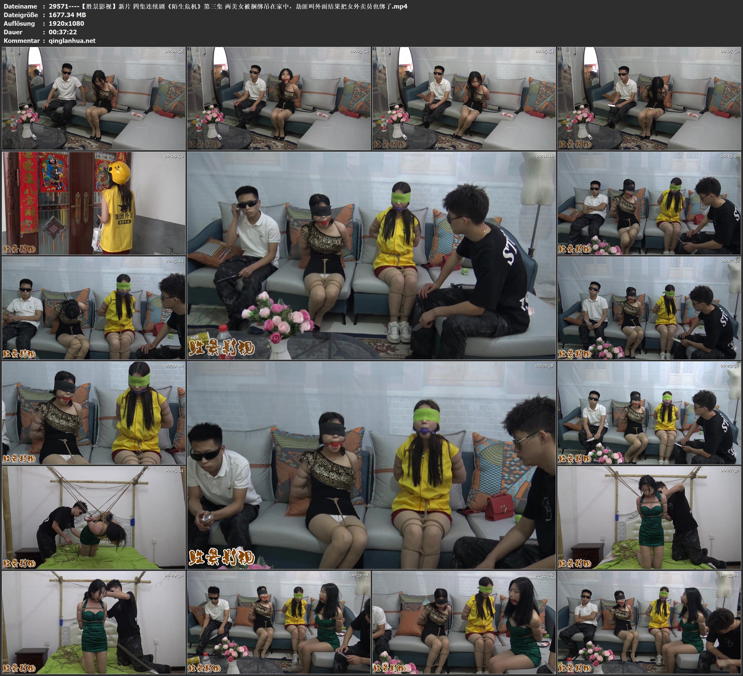 【胜景影视】新片 四集连续剧《陌生危机》第三集 两美女被捆绑吊在家中,劫匪叫外面结果把女外卖员也绑了