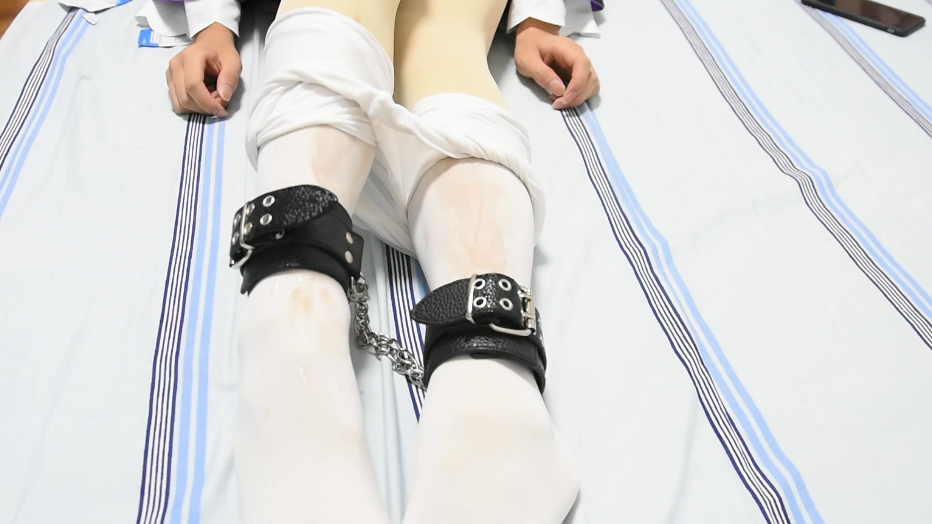 【LYL】伪娘cos蕾姆穿白丝带皮铐在丝袜上涂润滑液摩擦
