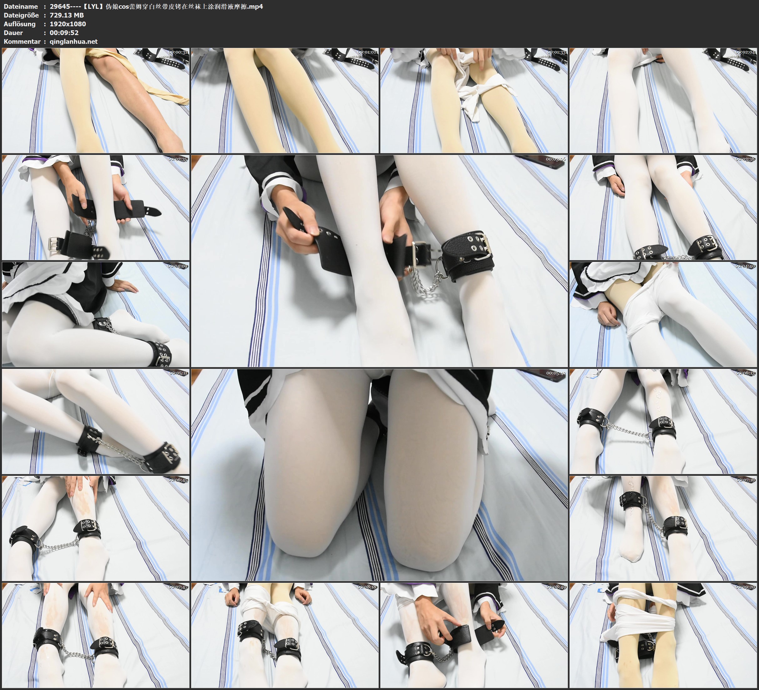 【LYL】伪娘cos蕾姆穿白丝带皮铐在丝袜上涂润滑液摩擦 ...