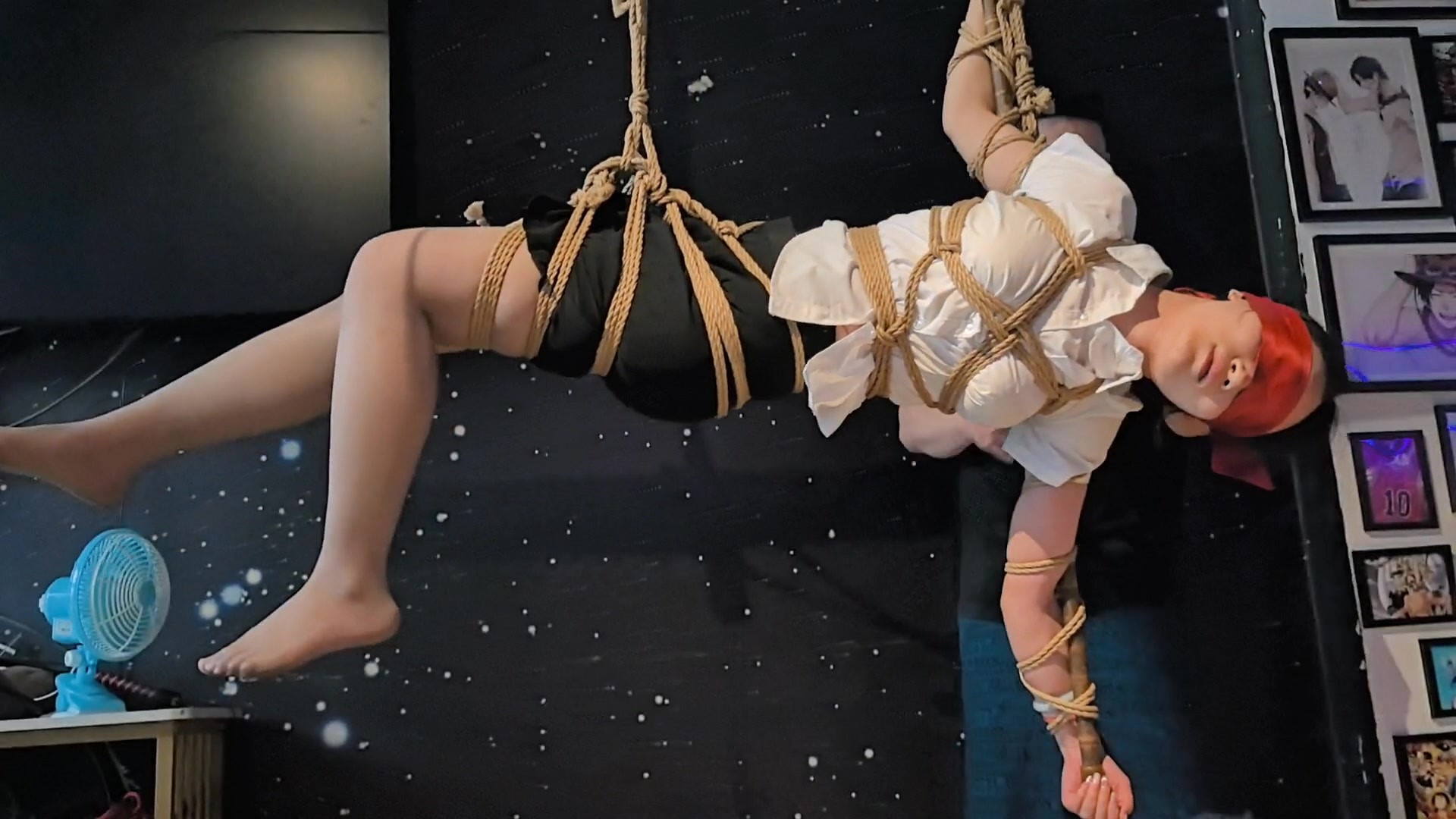【缚心室】真空上阵,油光灰丝小美女直臂紧缚折磨,吊缚+驷马一