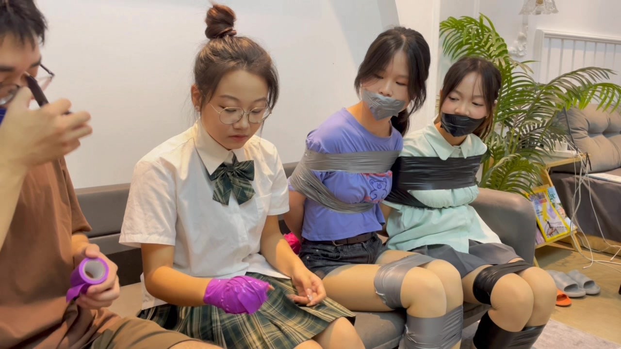 【小依】【小汪】【小杨】第一次拍摄三人捆绑,很费时间,也很有趣,3个人的简单挣脱实验1~