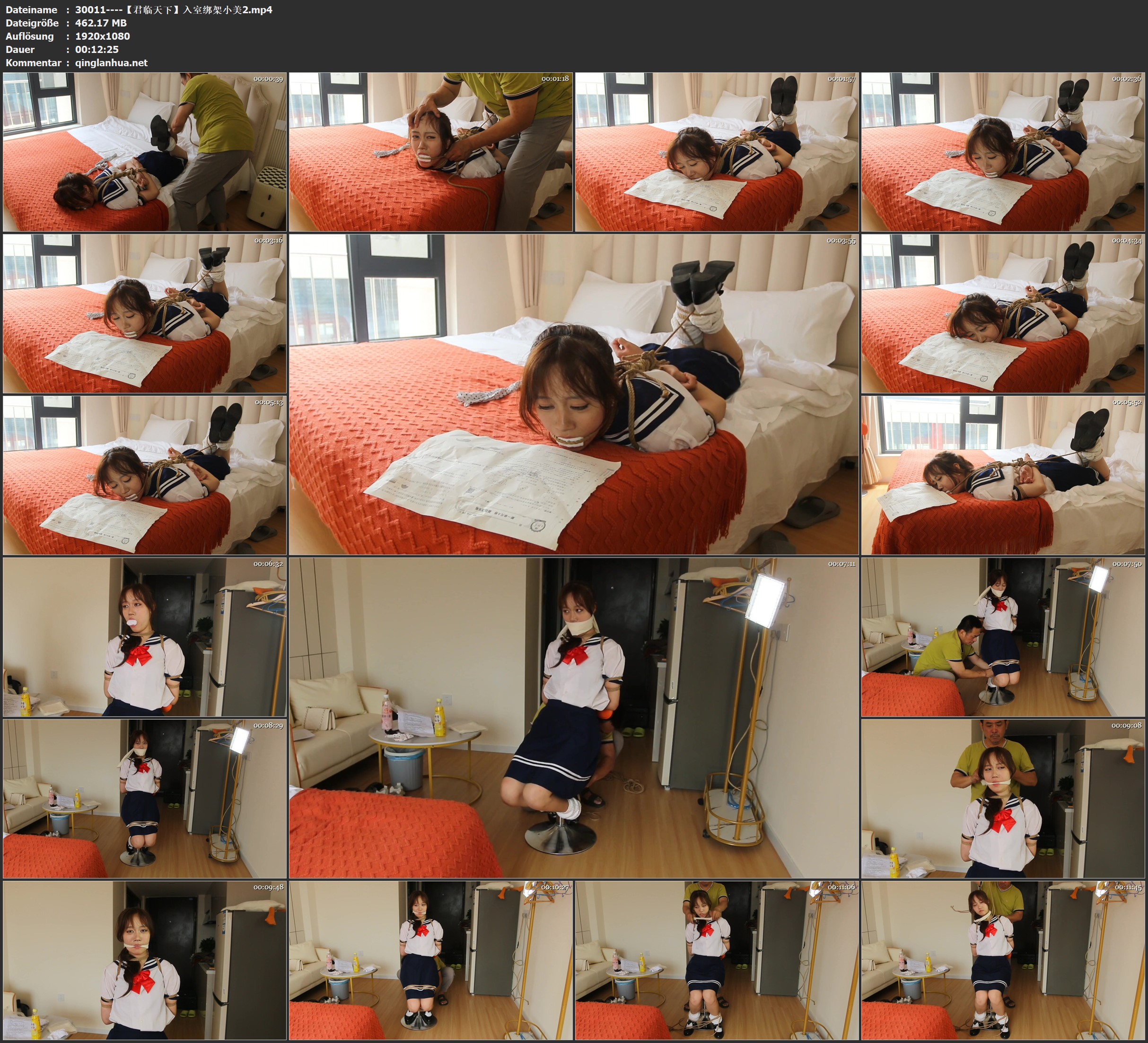 小美在逃脱无果后被返回的歹徒摁住,为了惩罚小美满足自己的欲望,歹徒用各种花样方式将小美绑起来玩弄