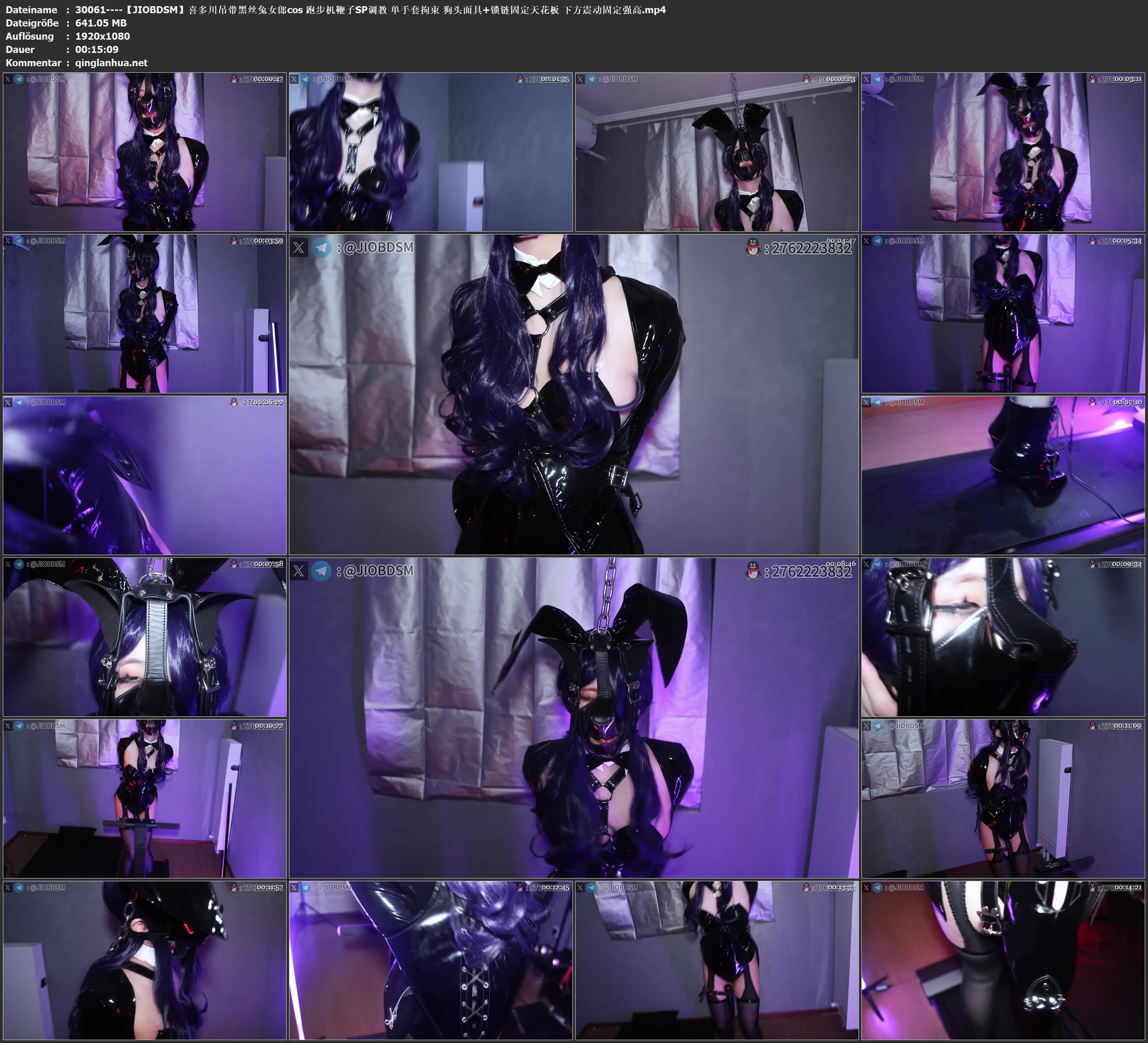 【JIOBDSM】喜多川吊带黑丝兔女郎cos 跑步机鞭子SP调教 单手套拘束 狗头面具+锁链固定天花板 下方震动固定强高