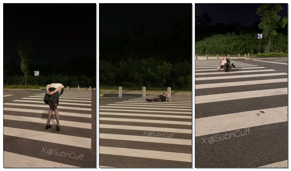 【Sub咔咔】户外铐在路灯上又在马路上摔倒SubM