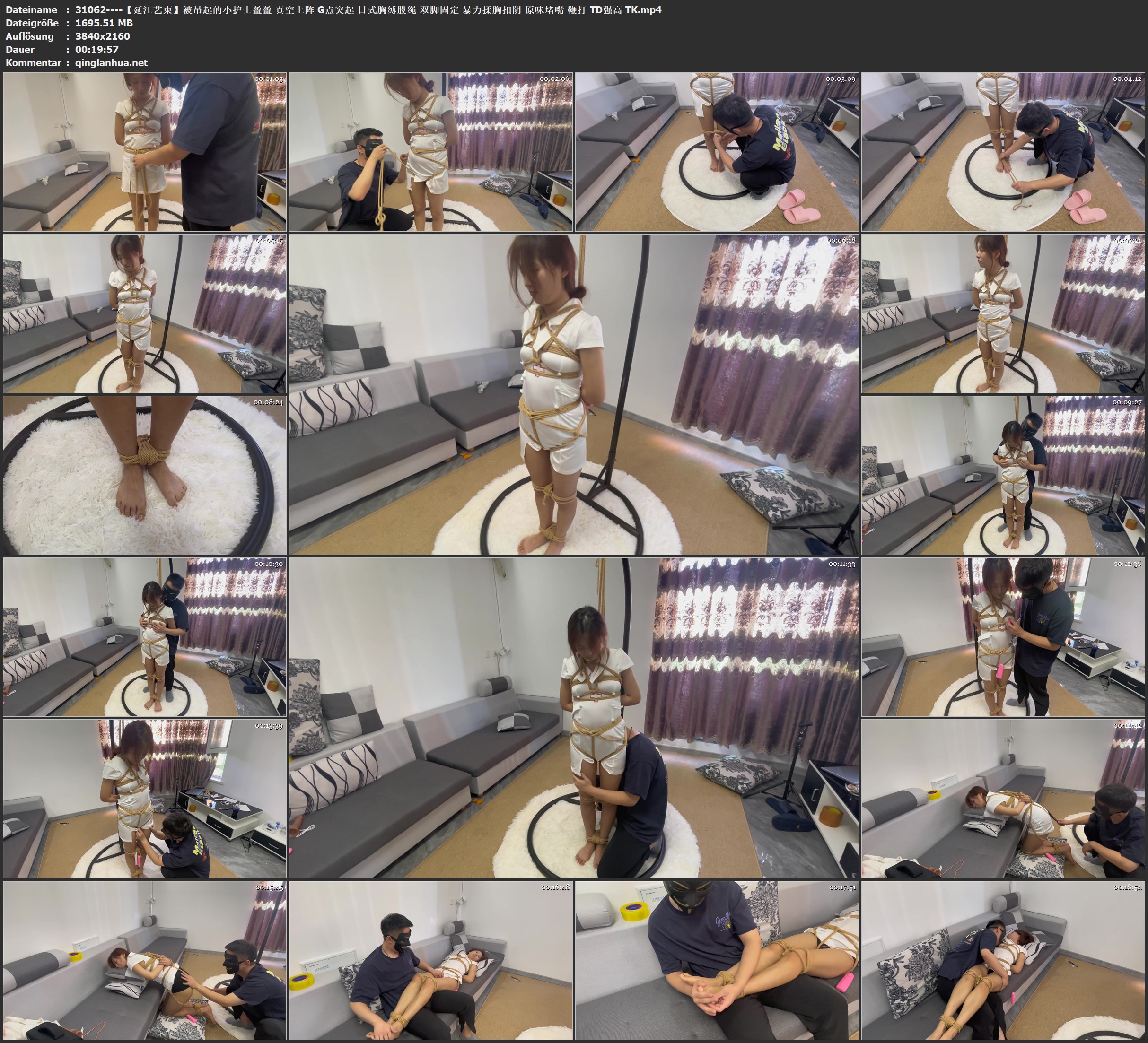 【延江艺束】被吊起的小护士盈盈 真空上阵 G点突起 日式胸缚股绳 双脚固定 暴力揉胸扣阴 原味堵嘴 鞭打 TD强高 TK