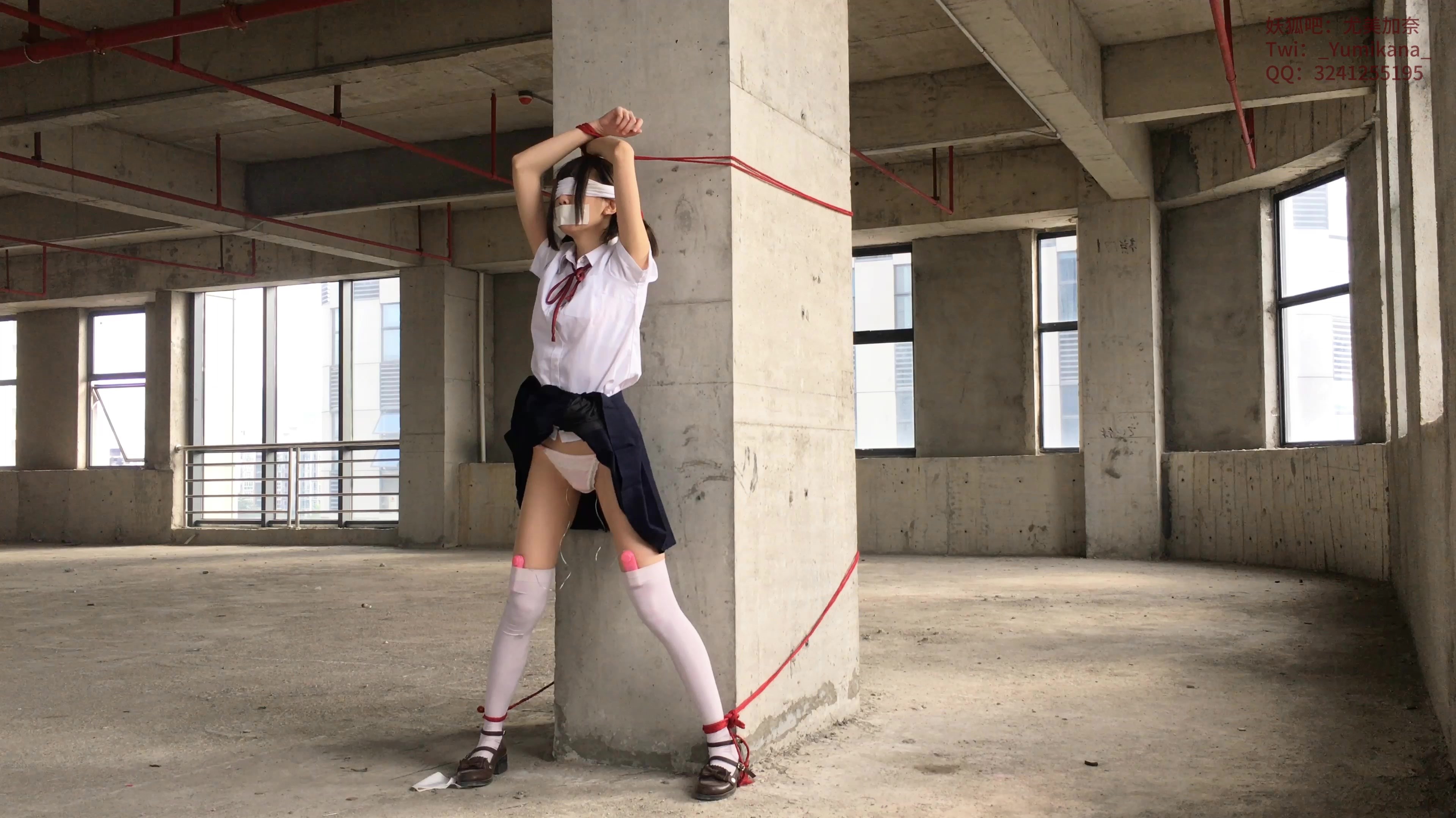 【尤美加奈】紧张刺激的废墟首作!双马尾白丝JK被尾随!胶布封嘴 + 蒙眼 + 郊狼 + TD棒棒强高 + 露出粉色内衣