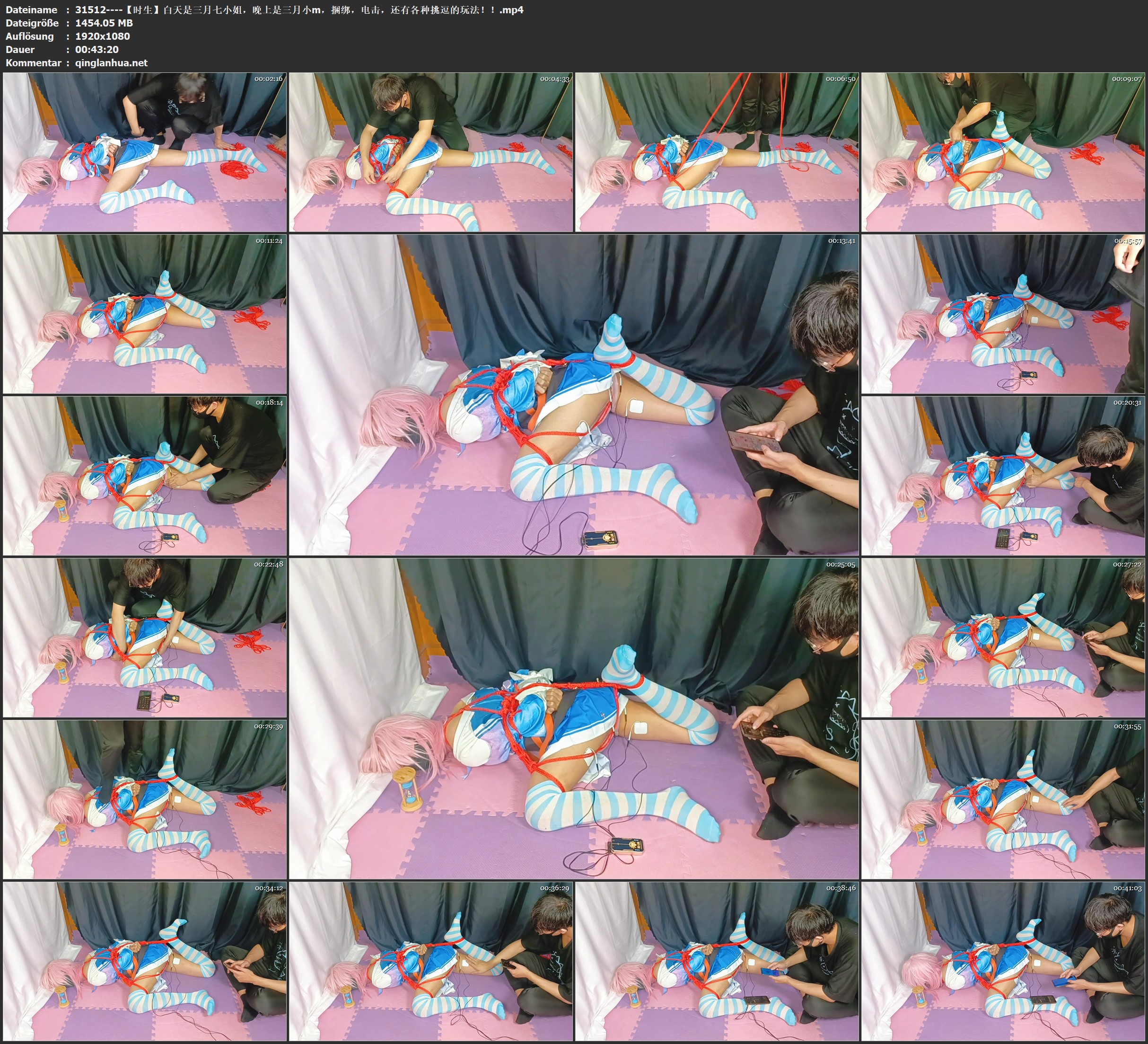 先是把上半身绑起来,接着各种各样的道具当然是不能够少的啦,接下来,自然就是好好的玩弄了,电击,挠脚心,打屁股的感觉不错吧,这柔软的身体,手感真好,摸起来真舒服,看着被郊狼电的一抖一抖的身体,真是可爱呢,最后的话,想到了一些奇怪的鬼点子,郊狼开启语音功能,在一旁打着音游,这样子就可以同时欣赏音乐和小三月的叫声了!!!