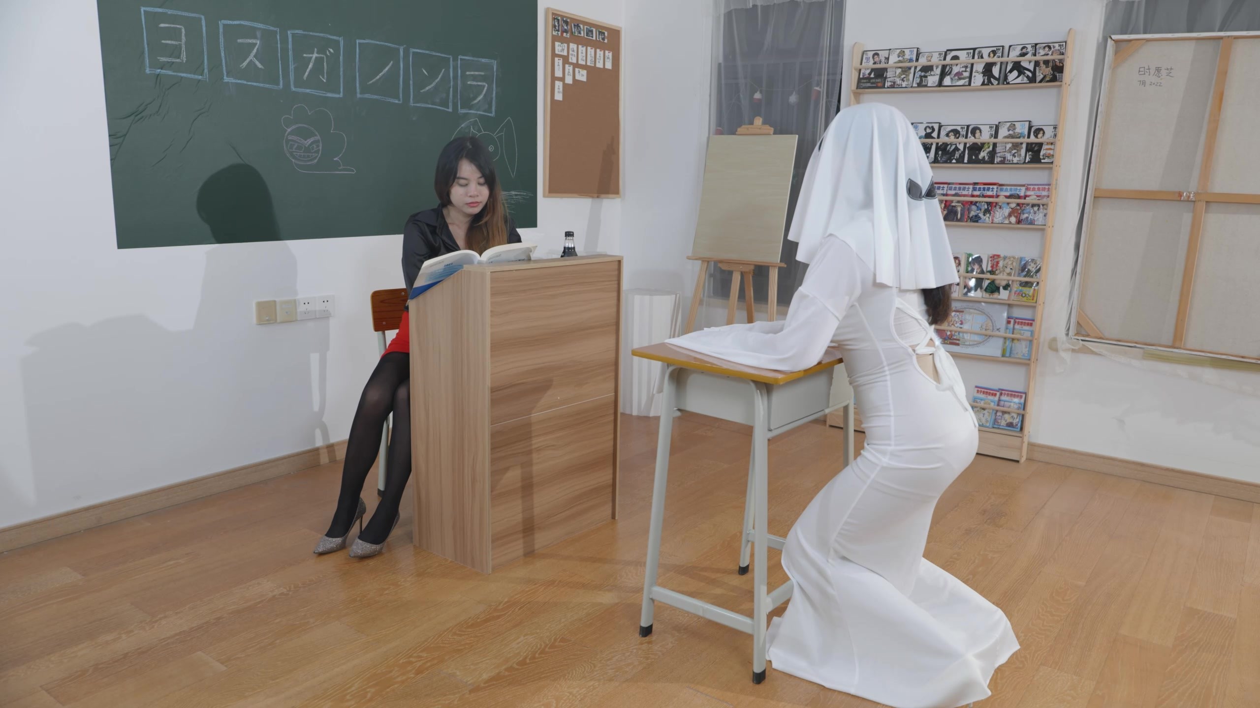 【红鲤鱼】安娜黑丝日式固定椅子白布勒嘴