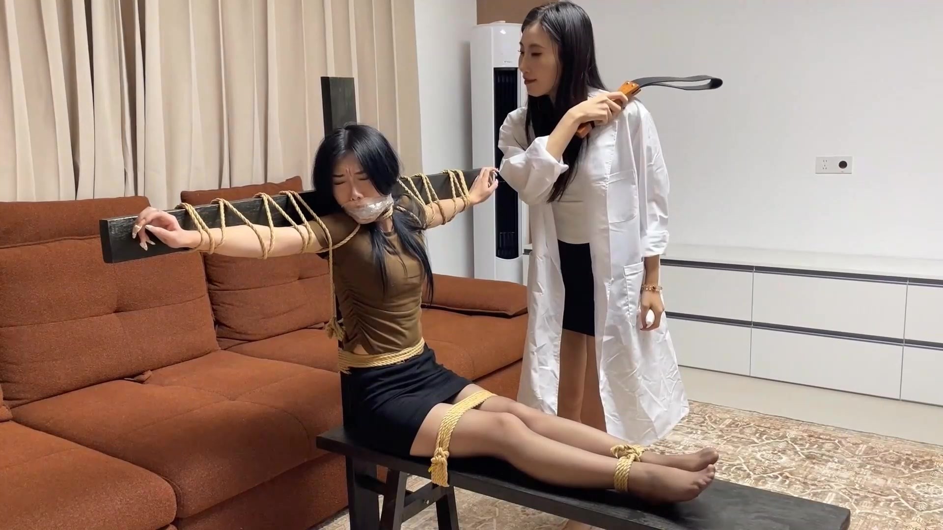 【缚心室】80多斤女学生的拘束架折磨小合集,啵啵贝VS炮机,两种
