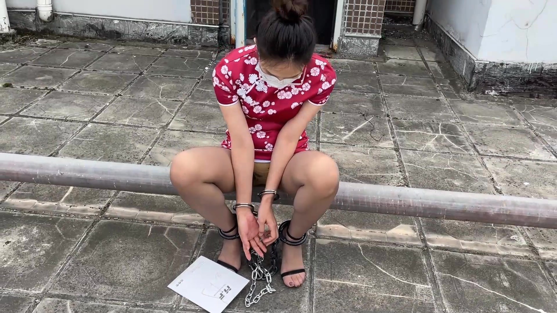 洋洋因贩毒被当场抓获,搜查官要求洋洋戴手铐脚镣在户外指认现场,为了让洋洋配合交代,特地在指认时在大庭广众下让洋洋换上开档丝袜,进一步磨灭洋洋的意志,使她心里防线彻底崩溃,旗袍丝袜高跟凉鞋,戴着镣铐换丝袜,情节挺有意思的