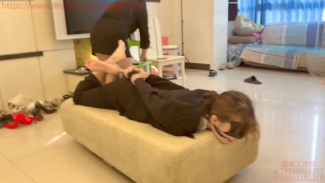 女总同时打开手机和包裹发现了令人惊奇的视频和物品。包裹里的东西被女总一一翻到桌面上;麻绳,刷子,藤条,口球,眼罩。手机同时找到了水儿中午看的调教视频。女总这才知道了水儿原来是个潜在的女M。检查完以后,女总坏笑的问水儿:“你有这癖好,那~你有没有实践过?”水儿听完像门走去准备逃跑。这时女总直接强制把水儿拉了回来并把水儿的手脚全部捆绑起来(手反绑)。女总:“其实我也有这癖好,只不过我喜欢对女孩子进行调教。看了你手机的几个视频,你好像喜欢双脚被人玩弄?我看你这方面是新手,那今天我可要好好调教一下你。”