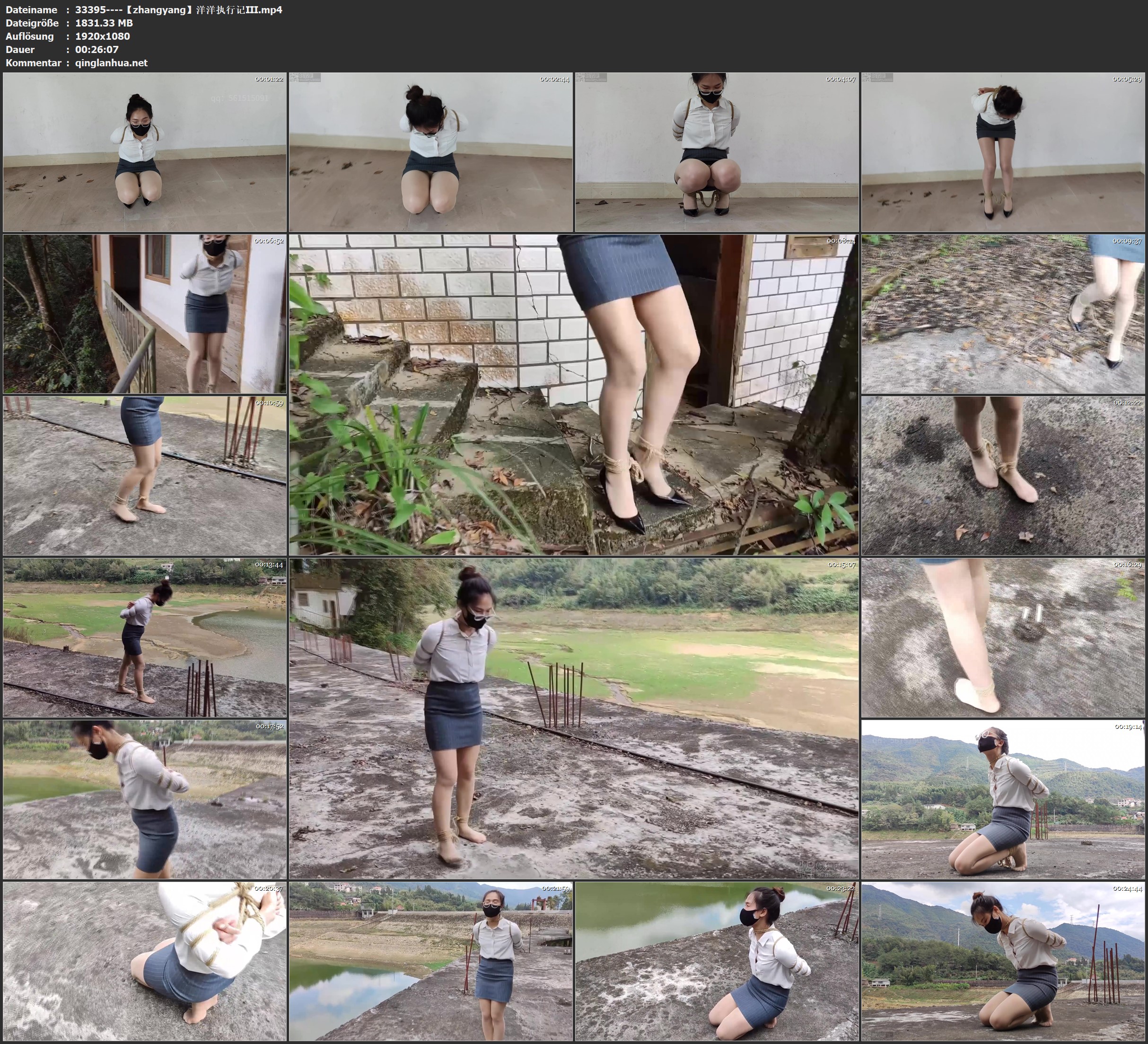 女囚洋再次上线,在户外被执行死刑,身穿制服高跟肉色丝袜,身体被五花大绑,脚腕绑绊脚绳,户外押解,户外执行,进入刑场后拖鞋露出丝足,最后双脚被捆绑,挣扎着跪下被执行